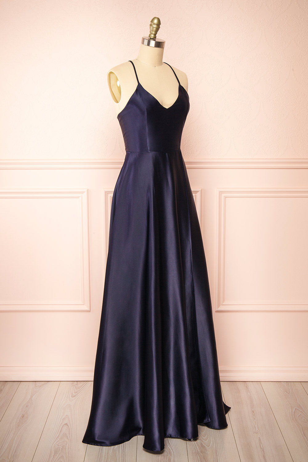 Julia Navy | Satin Maxi Dress with High Slit