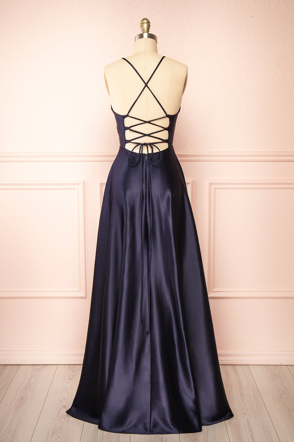 This satin dress will make you the star of the evening! Its elegant and minimalist allure will give you a polished look for any occasion. Its smooth comfortable fabric will hug your curves beautifully while highlighting your charming silhouette. The lace-up open back and high side slit will reveal your skin in an alluring way.