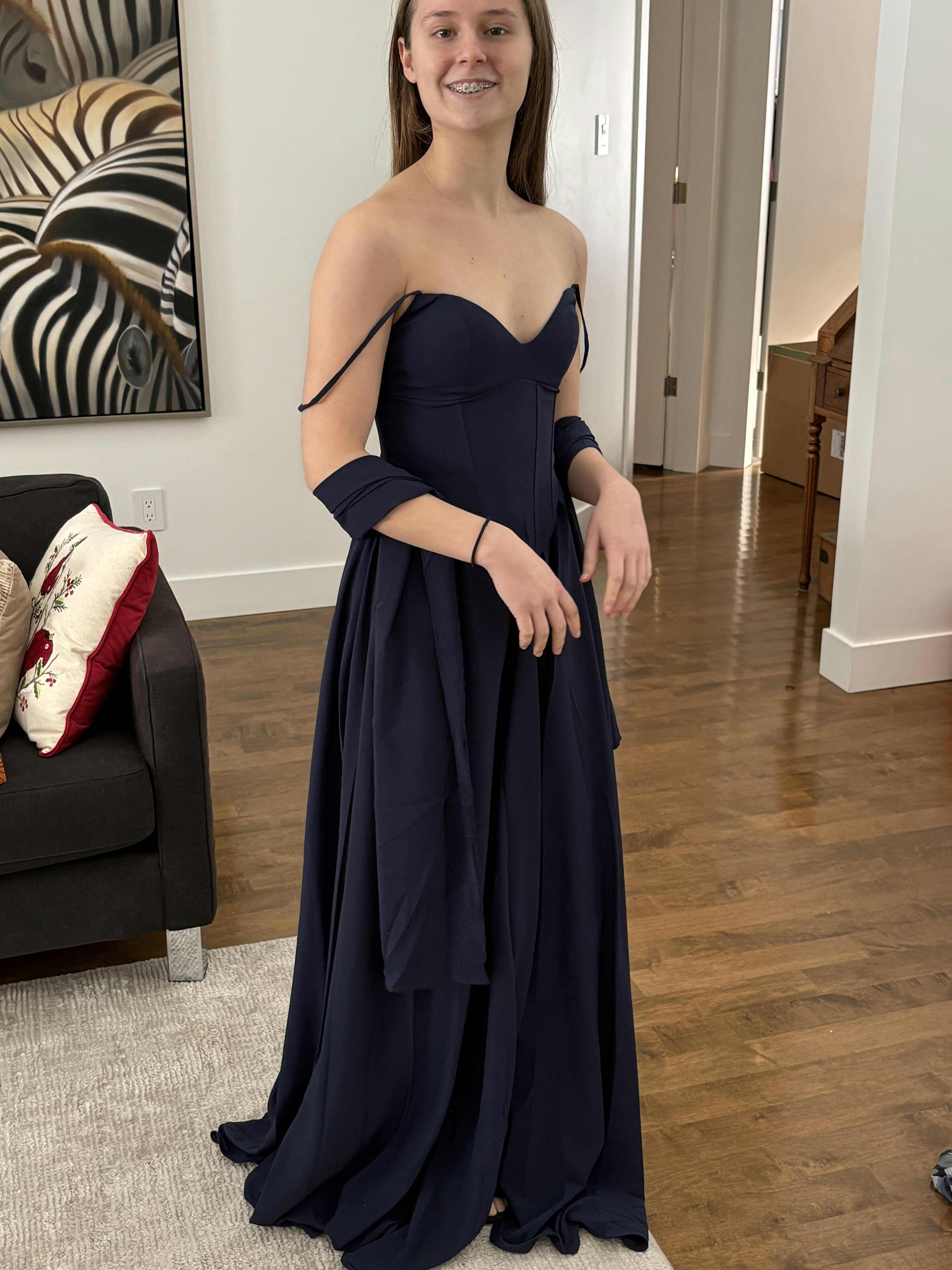 Syana Navy | Long Chiffon Corset Dress with Scarf