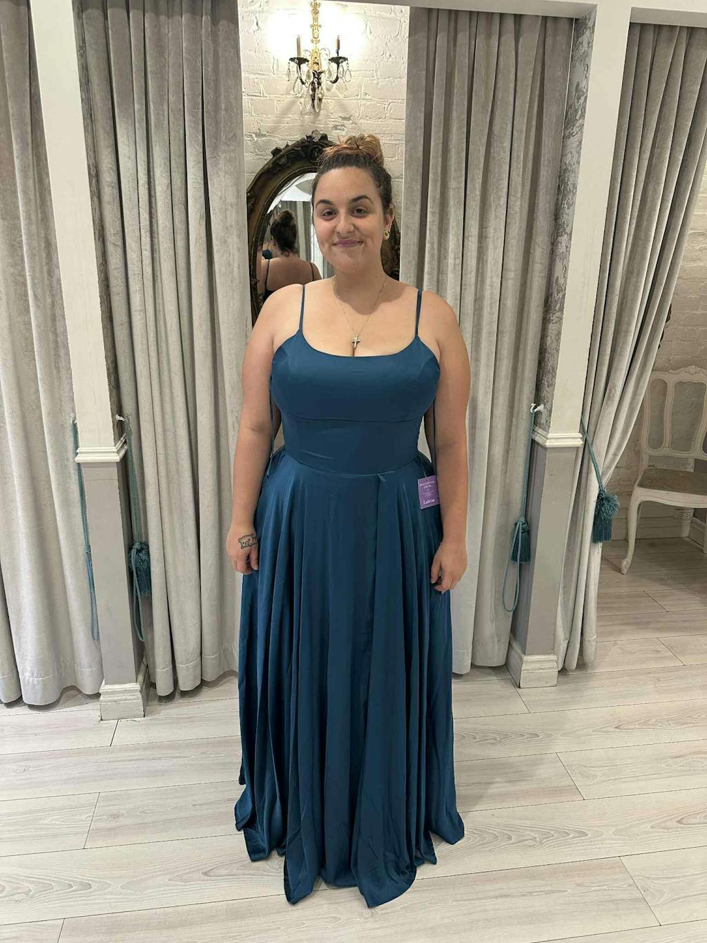 The simplicity of this dress is what makes it elegant. Let yourself be seduced by its soft satin fabric that will embrace your curves with charm. Its stretchable lining is so comfortable, you will want to wear it for all your special occasions! With thin, adjustable straps and a laced back, it is both convenient and delicate. You will love the practicality of concealed pockets, as well as the lateral slit which adds a sumptuous touch. You will certainly make heads turn!