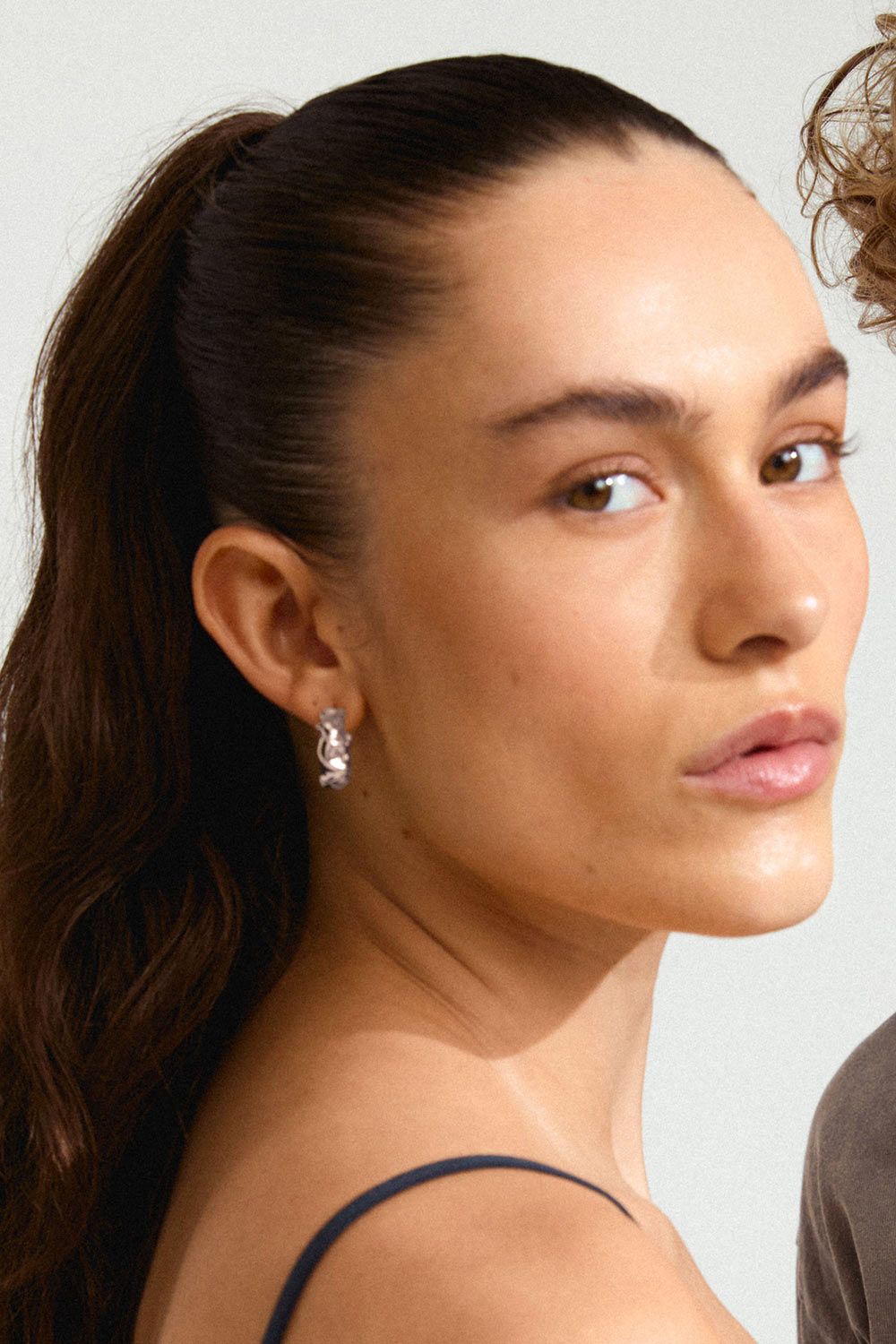 Instant Silver | Textured Half-Hoop Earrings by Pilgrim