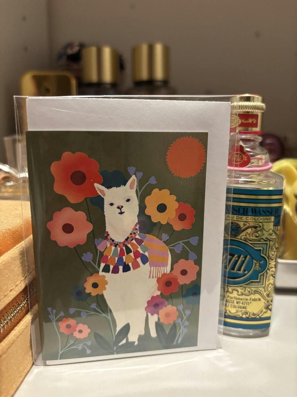 You will adore this lovely card made by Lili Graffiti in Montreal! The cute Lama and flower illustration will certainly bring a smile to your face. The mini size is not only unique, but surprisingly versatile, making it perfect for any occasion.