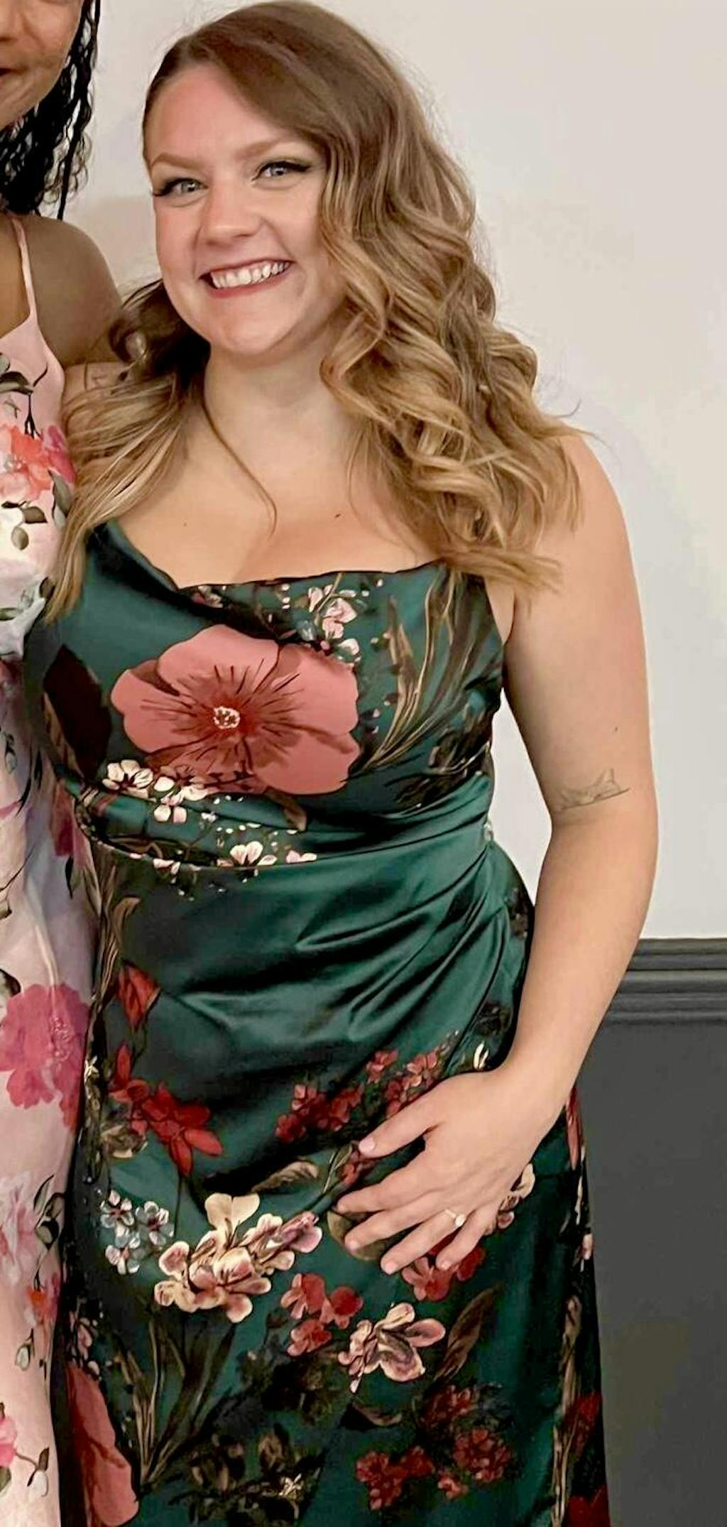 You will look simply beautiful in this floral midi dress! Its elegant satin fabric will make you stand out, while its cowl neck and its side slit will add a seductive touch to your look. Its fitted cut will complement your lovely figure while offering you freedom in your movements. You'll be able to adjust the length of the dress thanks to its thin and adjustable straps.