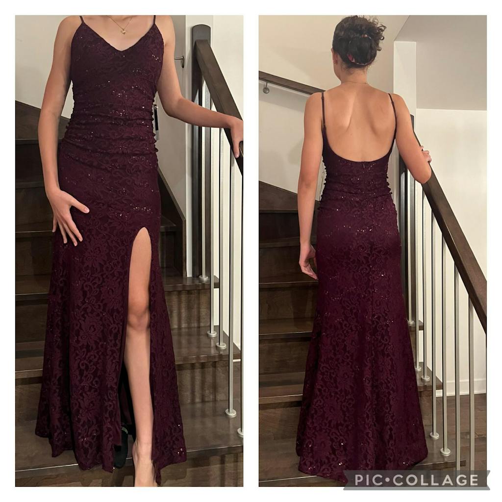Any special occasion is the perfect opportunity to wear something glamorous! This fitted maxi lacy dress will accentuate your lovely curves. You will adore its lace-up open back and V-neckline as they will seductively reveal your skin. The sparkly sequins and high slit will add a touch of elegance to your stunning outfit.
