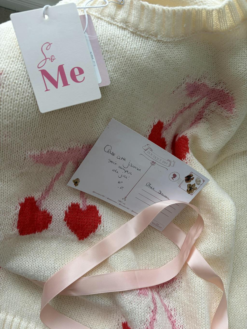 Alvina | Tricot en Maille Ivoire avec Cerises en Forme de Coeurs