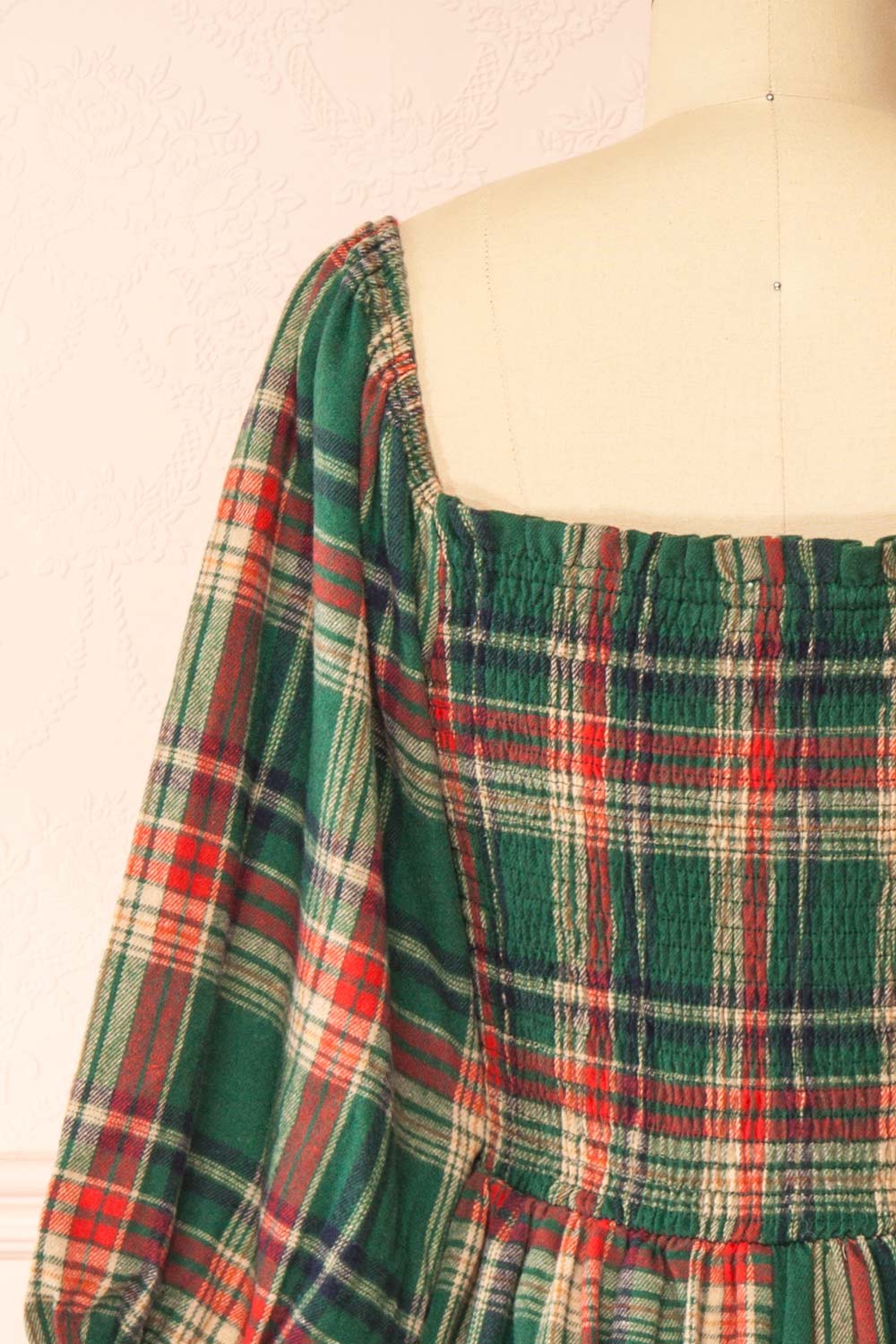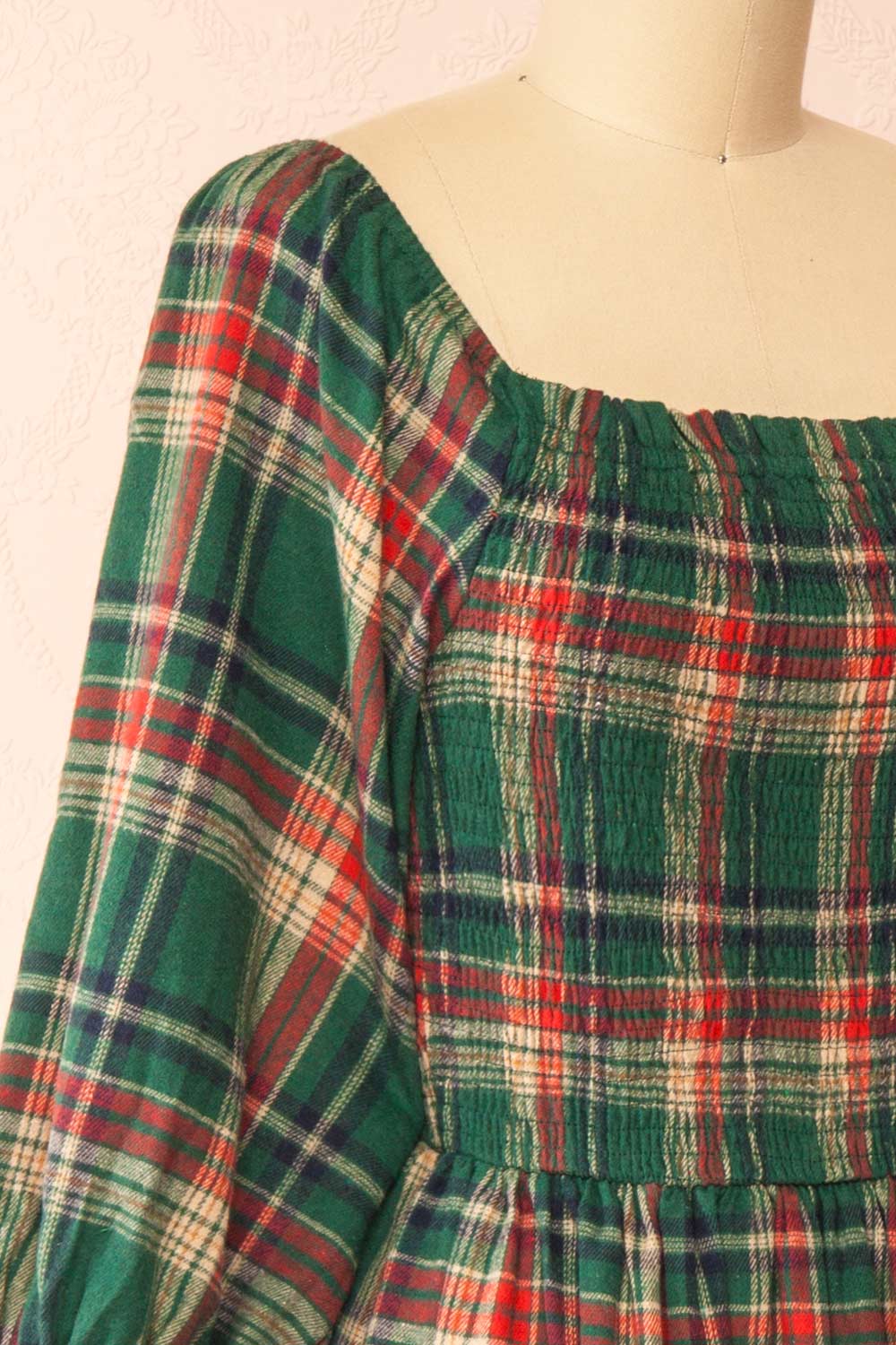 Arellia Vert | Robe Midi Carreautée en Flanelle