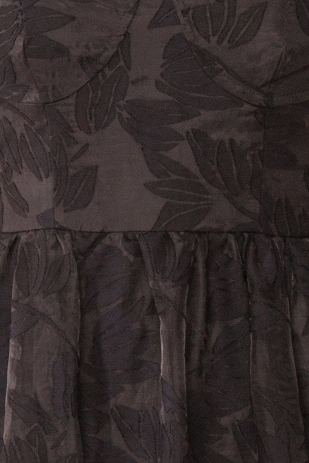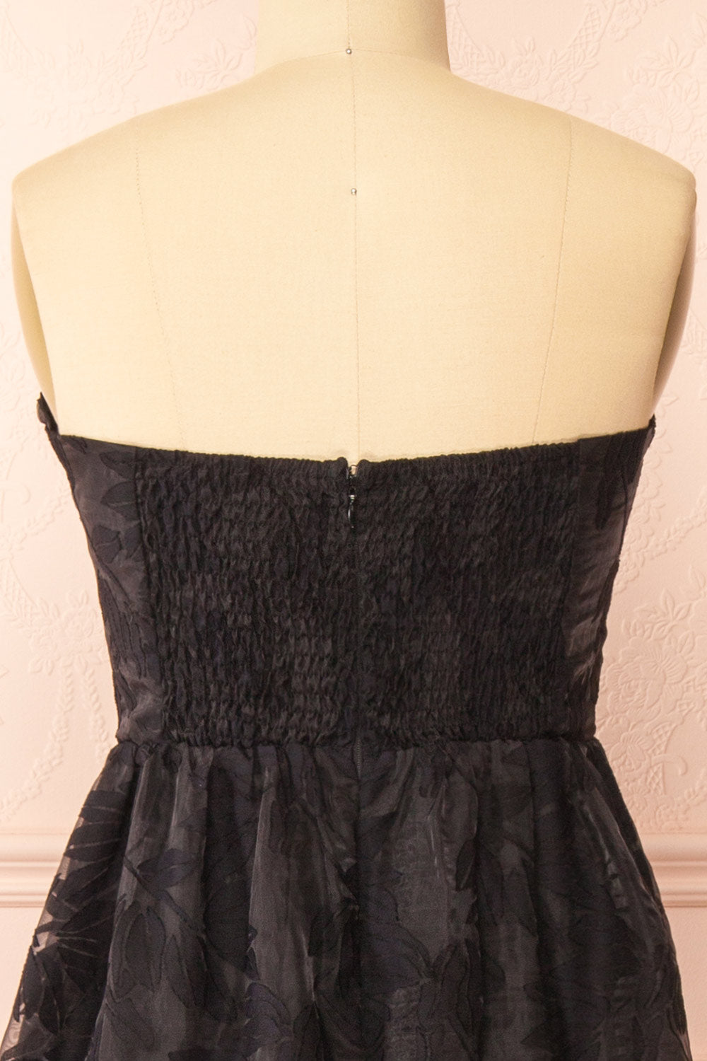 Laissez-vous transporter à l'époque baroque dans cette romantique robe midi fleurie noire! Son chiffon doux et sa broderie florale lui donnent un toucher sans pareil auquel il vous sera impossible de résister. Sa coupe ligne-A ainsi ses volants au bas ajoutent du volume à la pièce tandis que son haut bustier viendra complimenter délicatement votre silhouette. Sa bande de tissu froncé au dos vous assurera un port confortable!