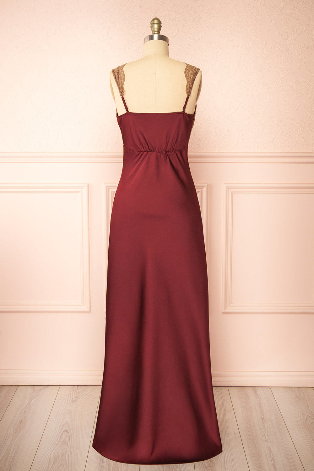 Evara Bourgogne | Robe Maxi en Satin à Dentelle