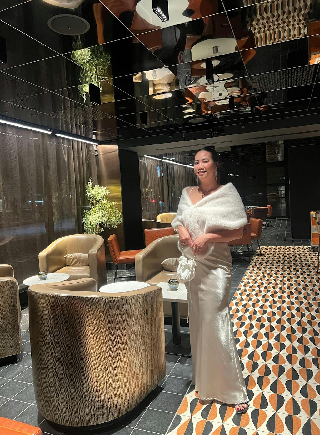 Cette robe longue évoque une douceur infinie avec son satin fluide et sa couleur brune chaleureuse. Ses bretelles sont faciles à régler, et sa coupe cintrée dessine une silhouette de rêve. Le châle fourrure assorti enveloppe vos épaules comme un câlin chic. La fermeture éclair latérale dissimulée permet de l'enfiler sans effort. Elle promet une soirée pleine de charme et de confort élégant.