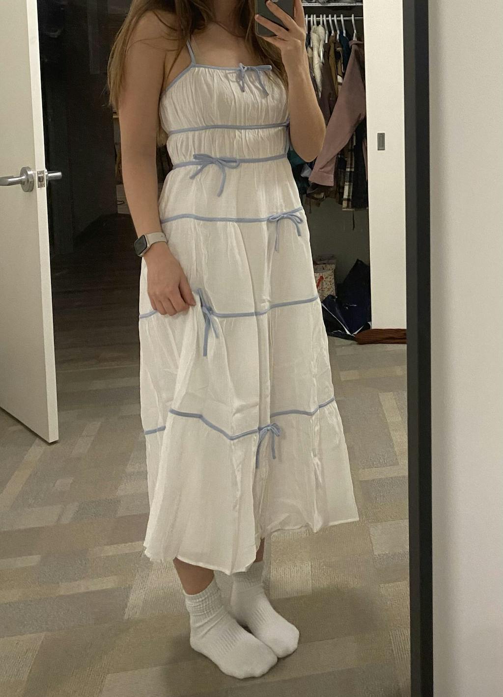 Juliriel | Robe Midi Blanche avec Rubans Bleus