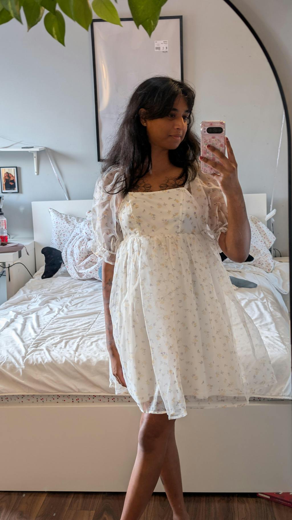 Laissez-vous charmer par cette courte robe fleurie! Vous adorerez la taille empire et la jupe volumineuse accentuée par le tule en dessous. L’encolure carrée et les manches bouffantes transparentes encadreront parfaitement votre buste de manière séduisante. Vous serez à l’aise grâce au dos froncé et à la doublure douce! Elle sera facile à enfiler grâce à la fermeture éclair latérale discrète!