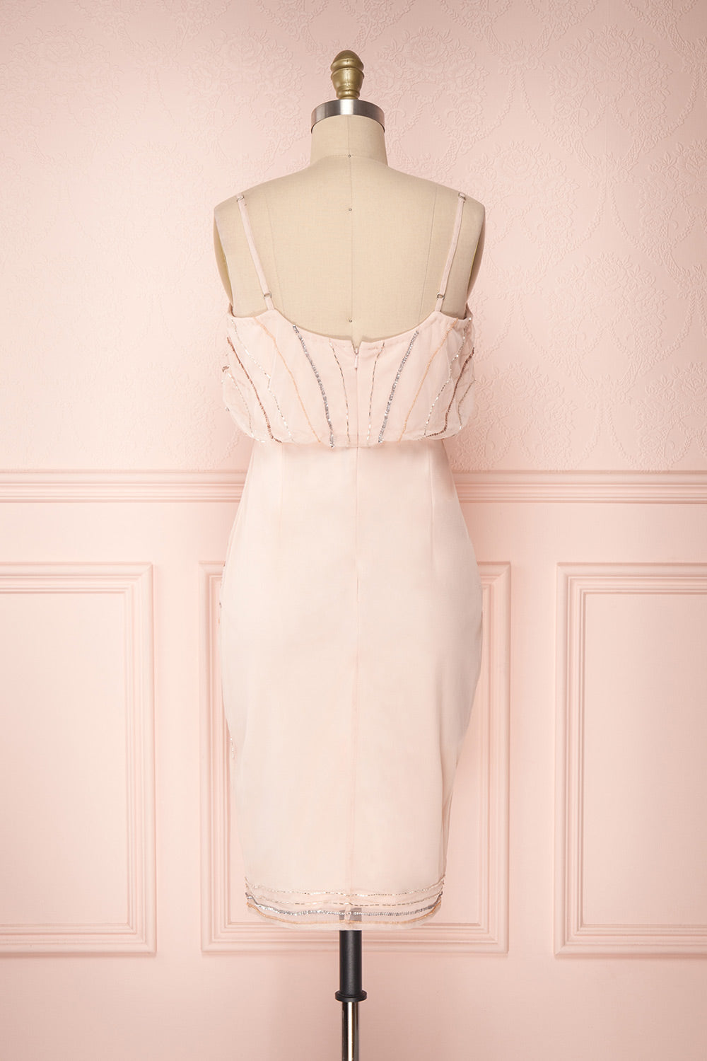 Relish the roaring 20s with this festive cocktail dress! The fitted cut has a puffed bust, and the mesh decorated with beads and sequins has a comfortable stretch lining. Adjustable straps and an invisible back zipper will be practical.