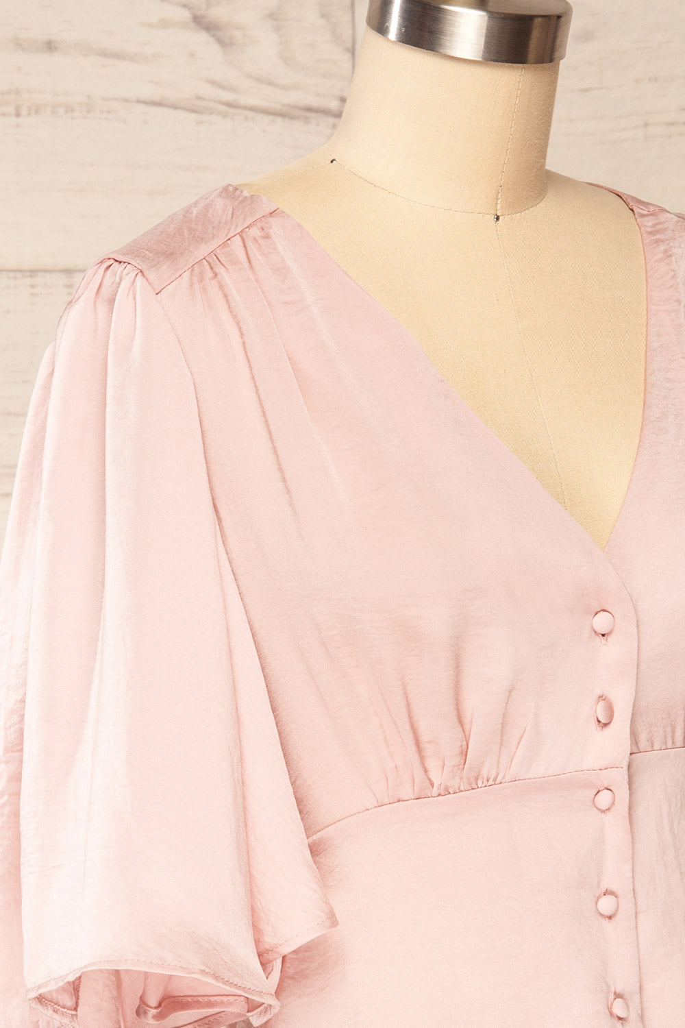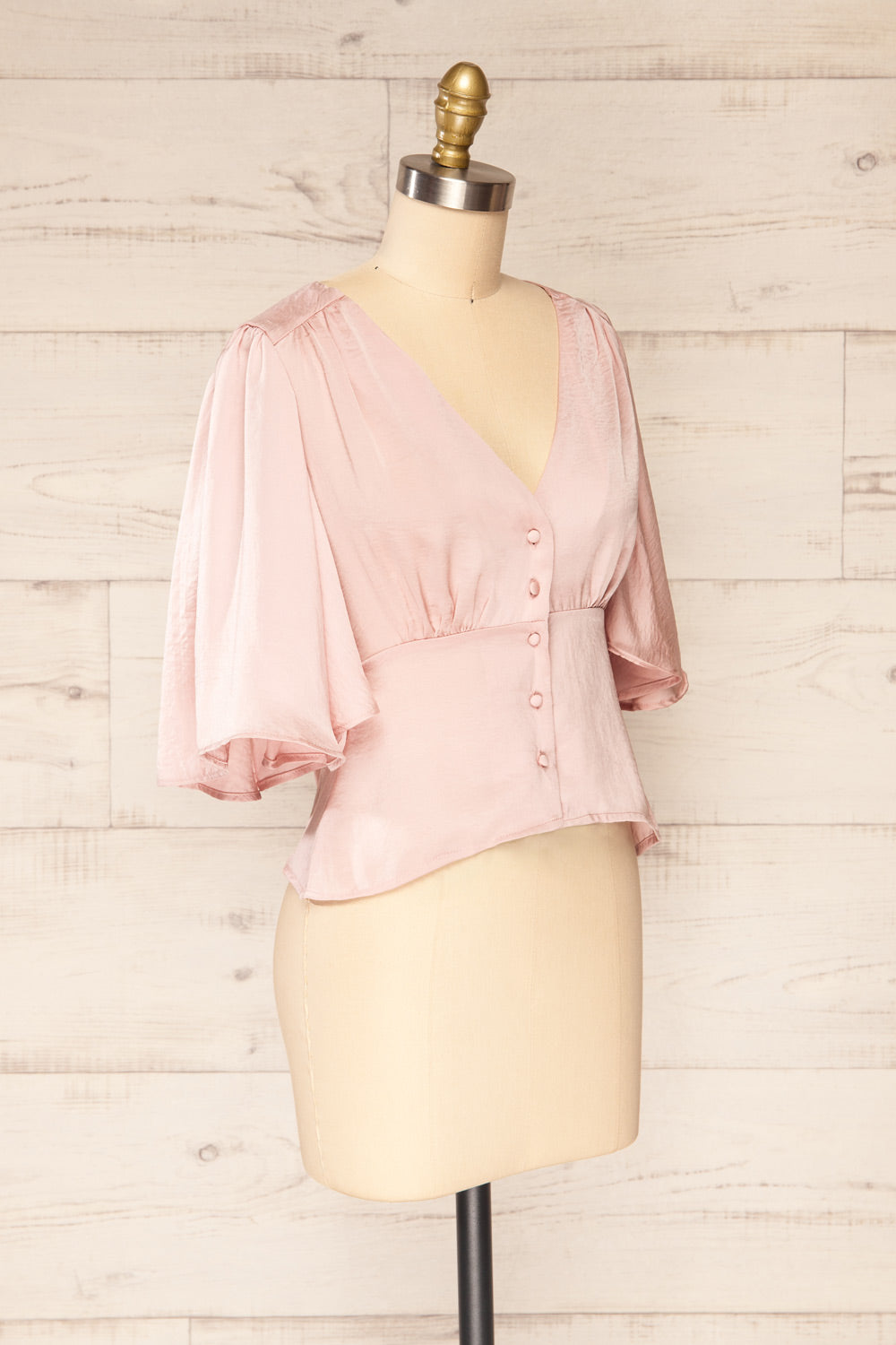 Abru Rose Pâle | Blouse Écourtée à Manches 3/4