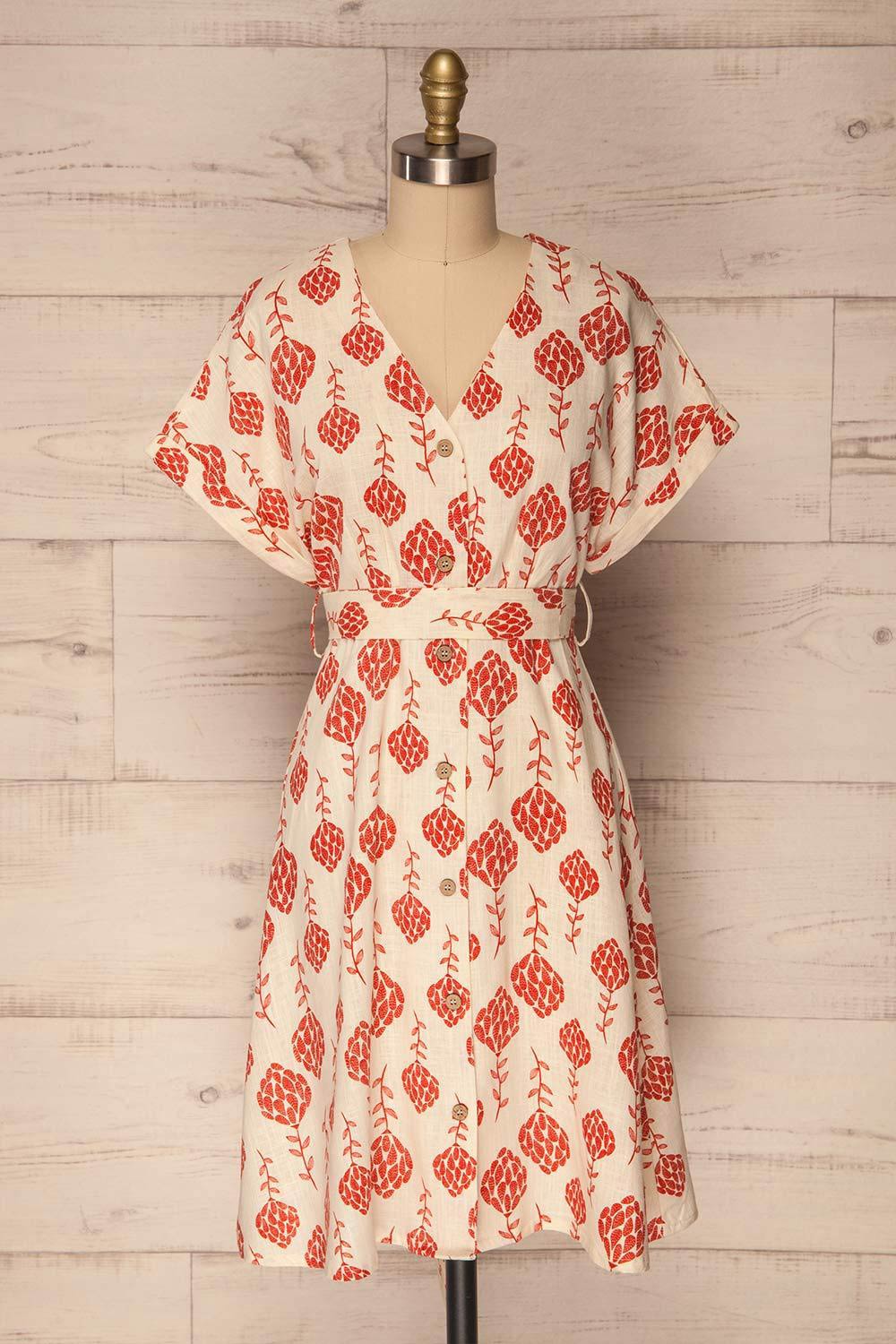 The botanical pattern of this summer button-up dress will inspire you! The A-line cut and linen blend fabric will be of a welcome confort under the sun's rays. The removable belt will highlight your figure, and the button-up front will prove both practical and stylish.