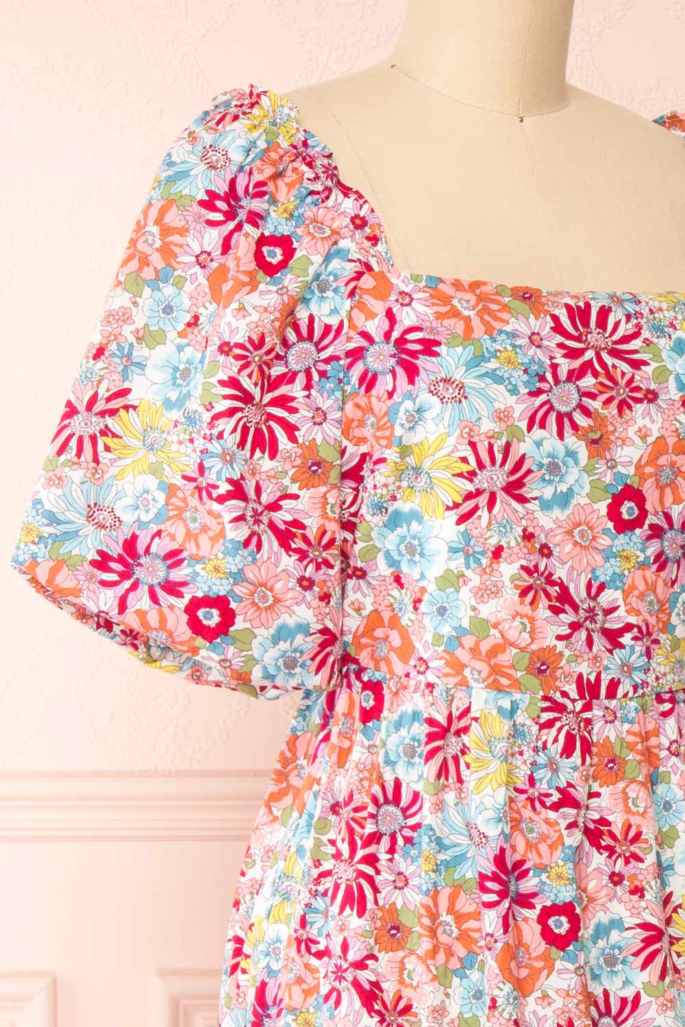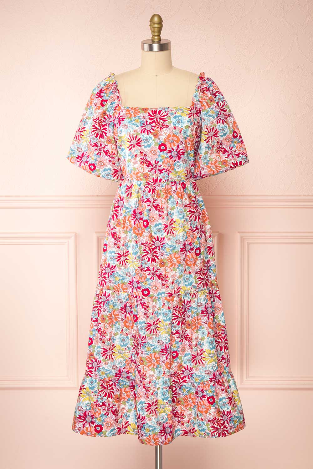 Vous serez absolument radieuse dans cette robe fleurie! Sa coupe ligne-A et son encolure carrée épouseront vos courbes à merveille. Vous adorerez ses manches ballons et ses volants, pour l'allure romantique qu'ils ajoutent à la pièce. La fermeture éclair dans le dos vous permettra de l'enfiler facilement.