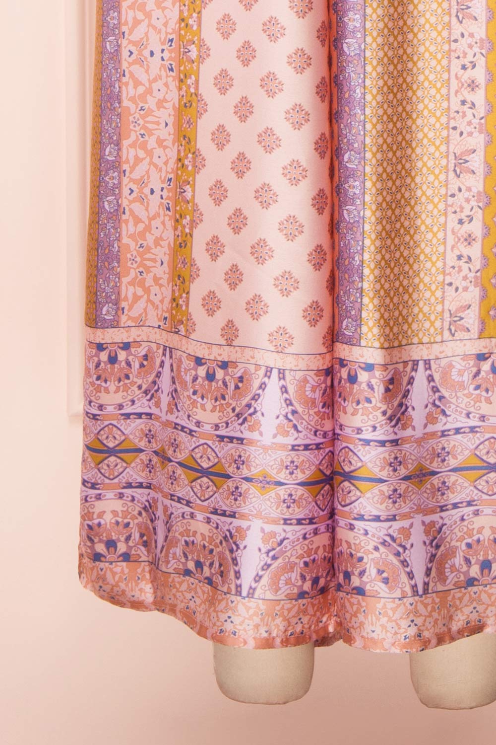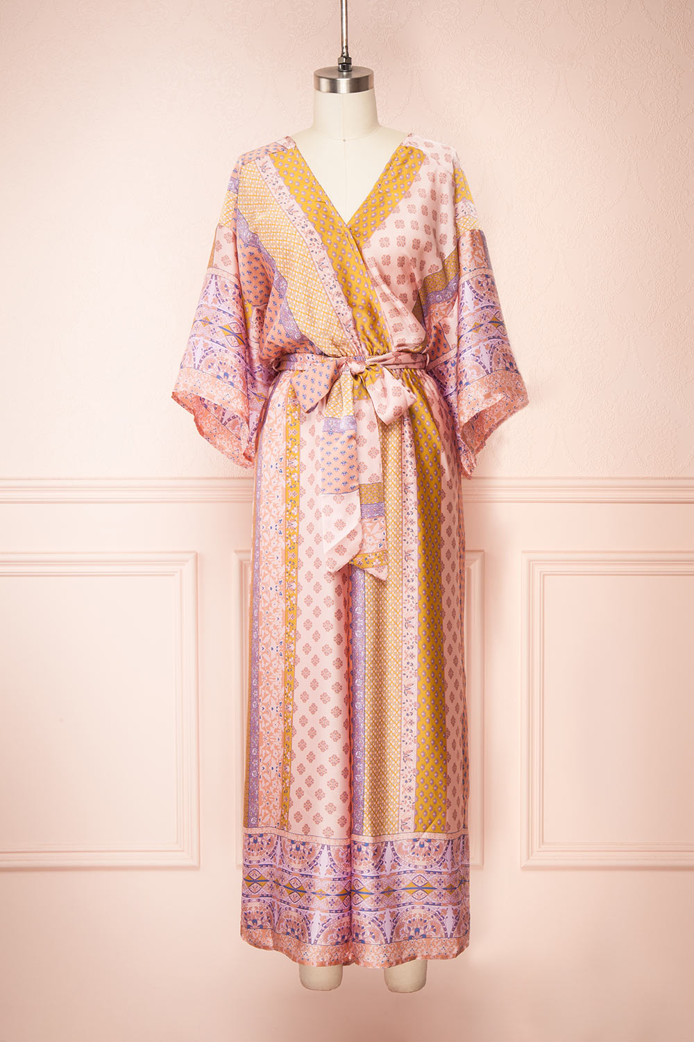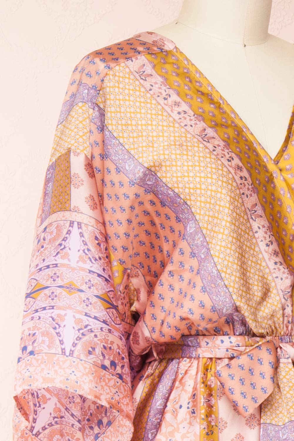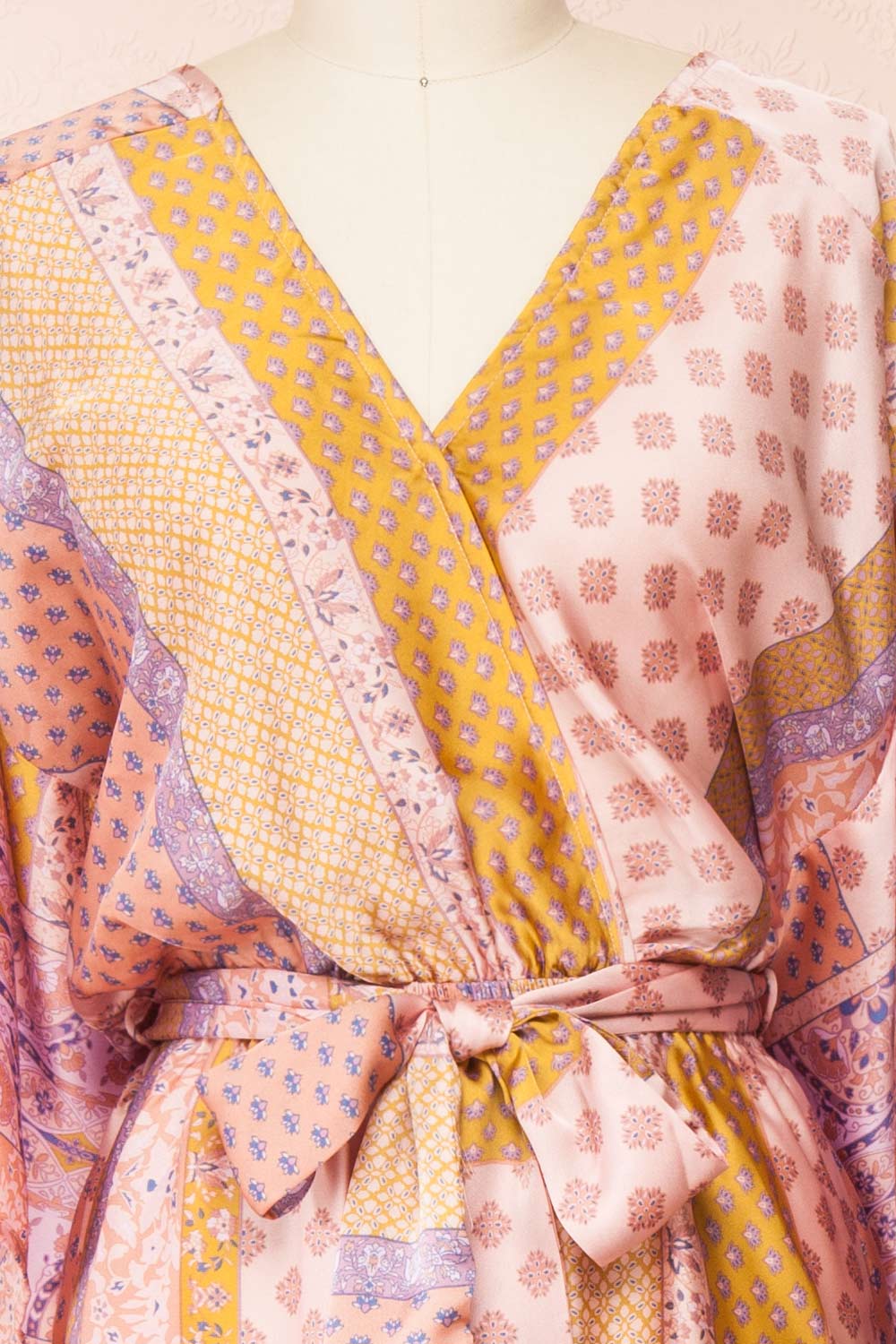 Cette ravissante combinaison vous offrira une tenue complète très tendance et parfaite pour le début de la saison estivale! Son tissu léger complimenté par son motif bohémien coloré vous méritera plus d'un compliment. Vous adorerez la façon dont son col portefeuille encadrera votre buste tout en dévoilant votre peau. Sa jambe large vous permettra de bouger en toute liberté et de profiter de votre journée au maximum. Grâce à sa ceinture de tissu, il vous sera possible d'accentuer votre taille à votre goût.