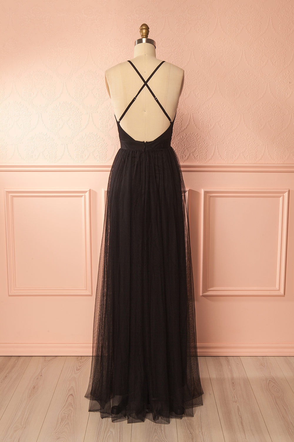 Aliki Noir | Robe en Tulle à Décolleté Plongeant