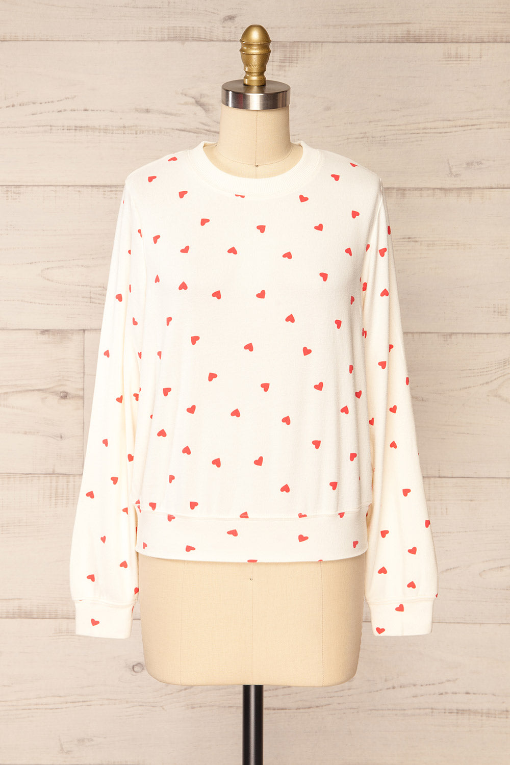 Allorah | Chandail Ivoire à Motif de Coeurs