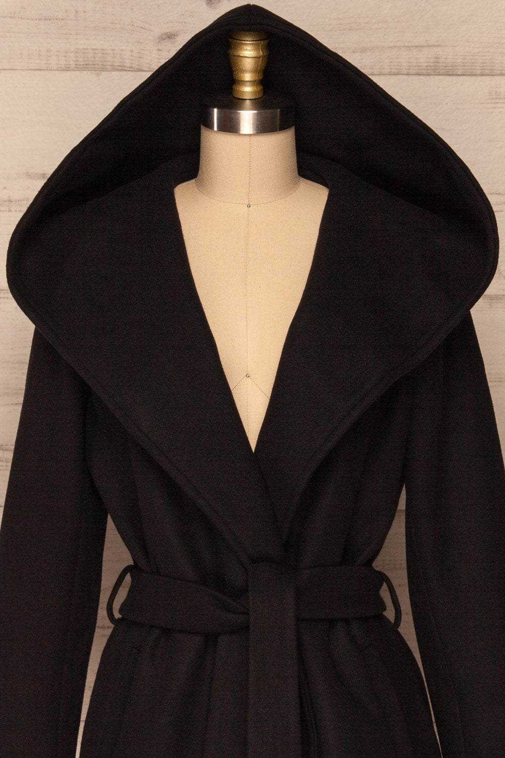 This long coat will envelop you in warmth and style! Its soft felt and bulky hood will provide you with comfort and protection from the cold, while the fabric belt that closes the coat will accentuate your waist.