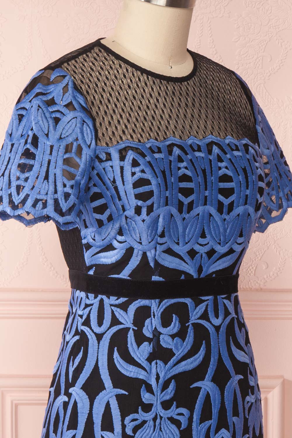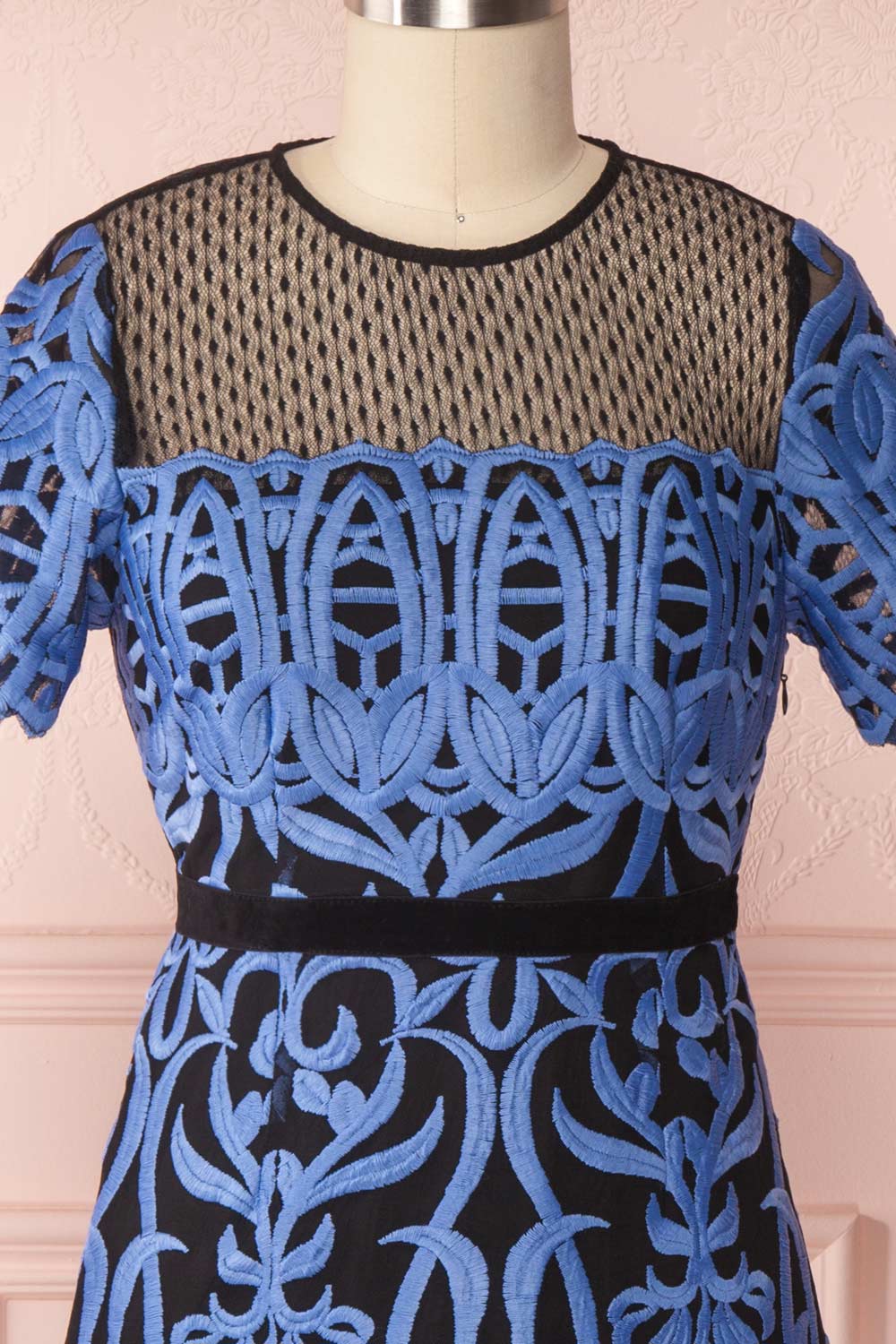 Cette robe aux arabesques envoûtantes possède une prestance à couper le souffle! Sa coupe courte ajustée recouvre une courte doublure opaque. Une ouverture boutonnée au niveau de la nuque et une fermeture éclair dissimulée sur le côté vous permettront de l'enfiler avec aise.