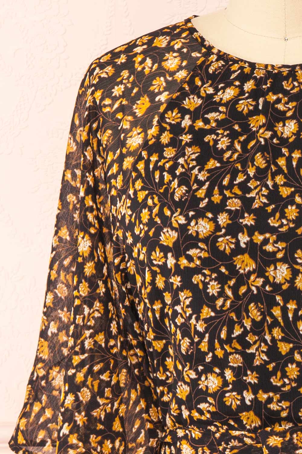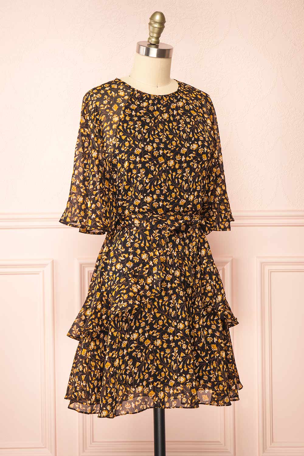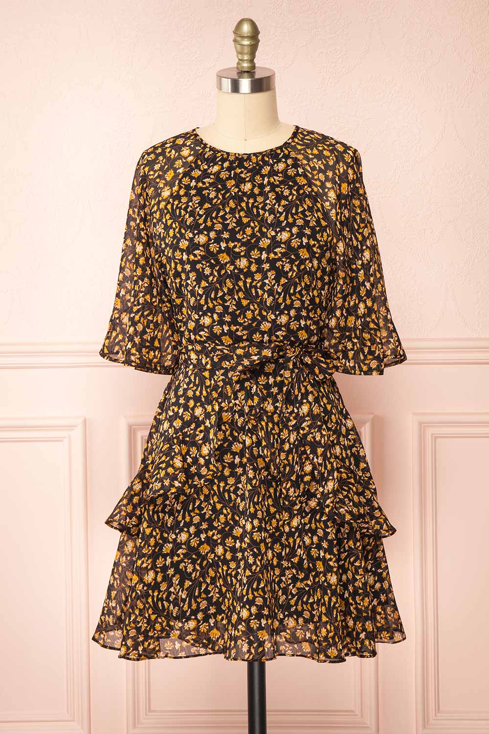 Laissez vous charmer par cette magnifique robe ligne-A! Vous tomberez sous le charme de son motif floral aux couleurs automnales tandis que ses volants légers au niveau de la jupe et des manches courtes ajouteront une touche romantique à votre tenue. Finalement, vous trouverez utile sa fermeture éclair discrète au dos ainsi que sa ceinture en tissu qui seront vos alliés pour un ajustement parfait!