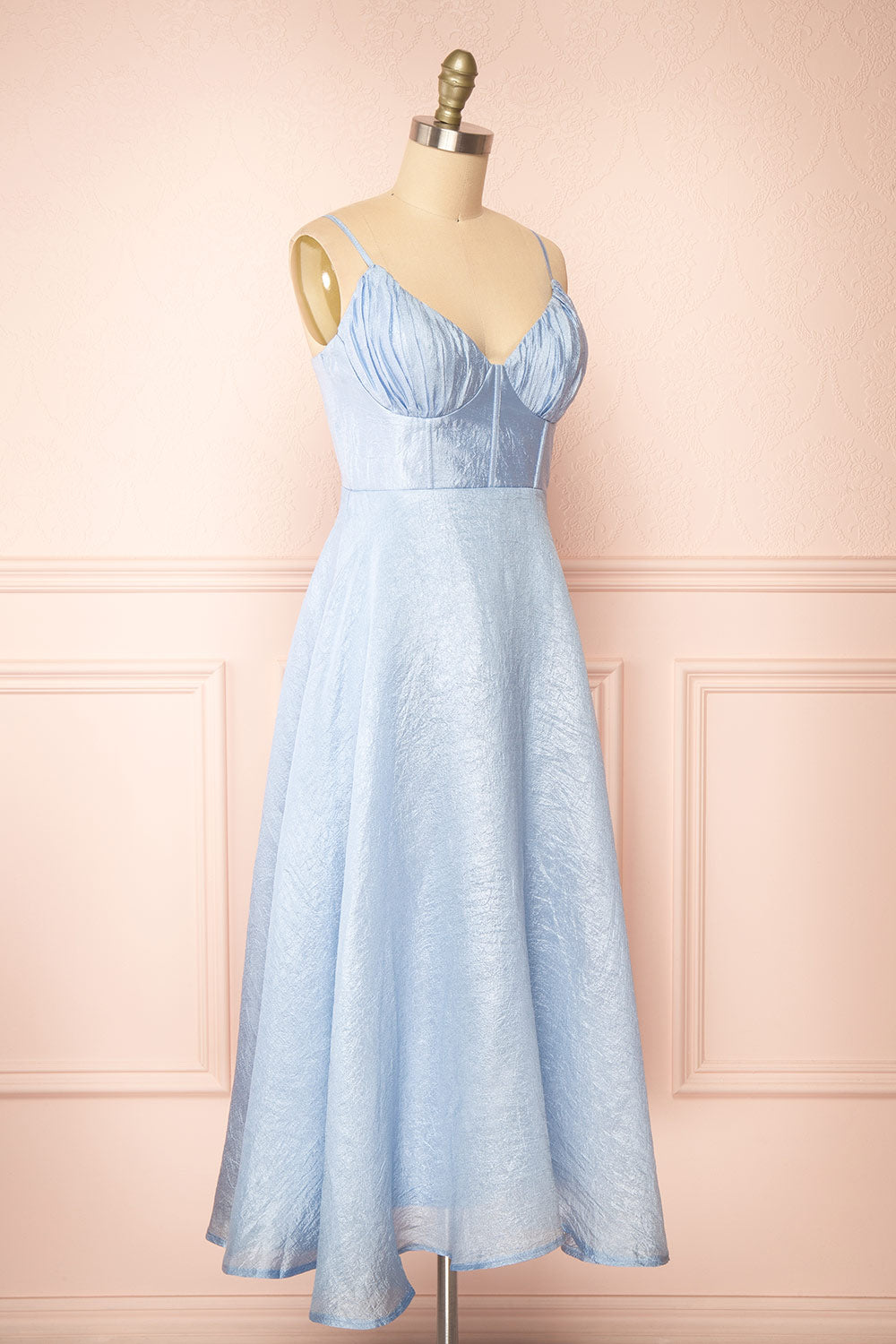 Vous serez absolument sublime dans cette robe midi en satin texturé bleu clair, parfaite pour toute occasion spéciale! Le haut de style bustier offre à la fois confort et structure, avec des bonnets rembourrés intégrés et des baleines pour une allure flatteuse. La coupe ligne-A ainsi que les bretelles réglables offrent une coupe qui complimentera toutes les silhouettes, tandis que la fermeture éclair invisible au dos vous permettra d'enfiler cette pièce en toute simplicité. Élégante et éthérée, cette robe midi ne manquera pas de faire sensation où que vous alliez.