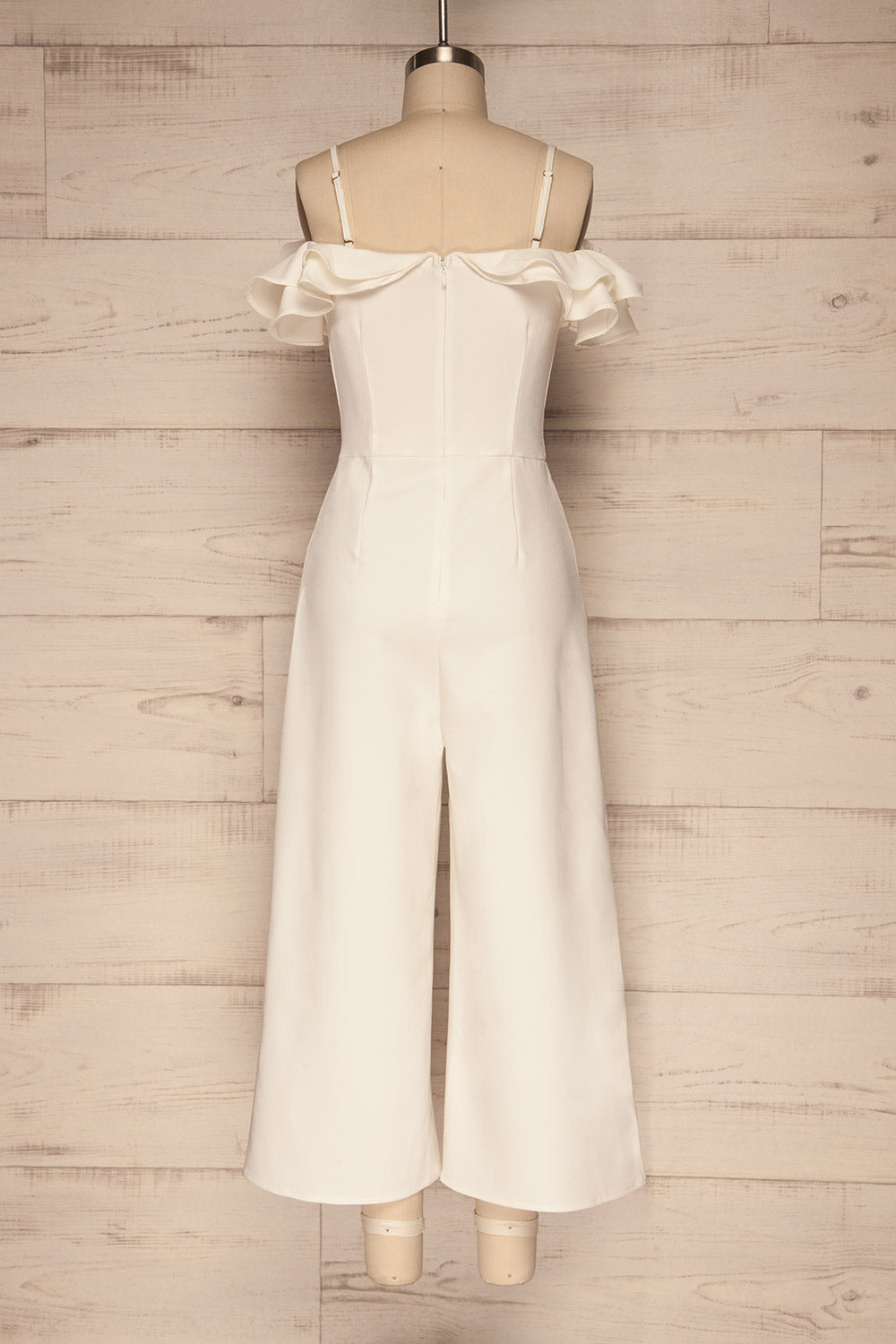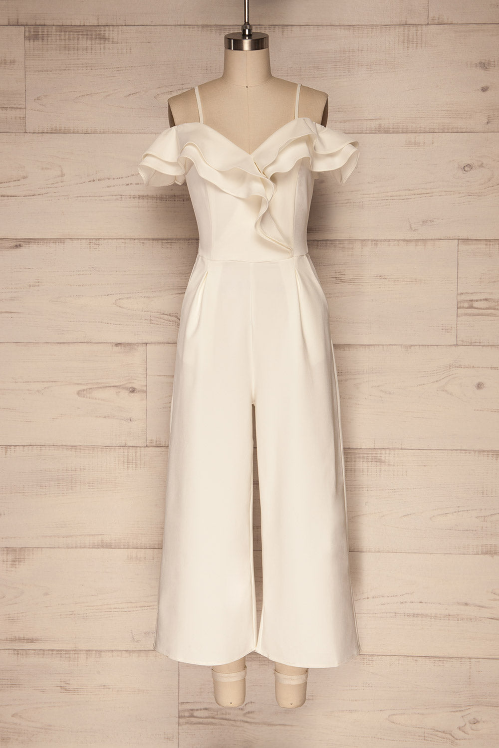 Sport a charming and classic look for your special occasions! The ruffled off-shoulder neckline and short sleeves will frame you perfectly. The adjustable straps, as well as the smooth lining ensure an optimal comfort. The wide leg features pockets, while an invisible zipper can be found in back.