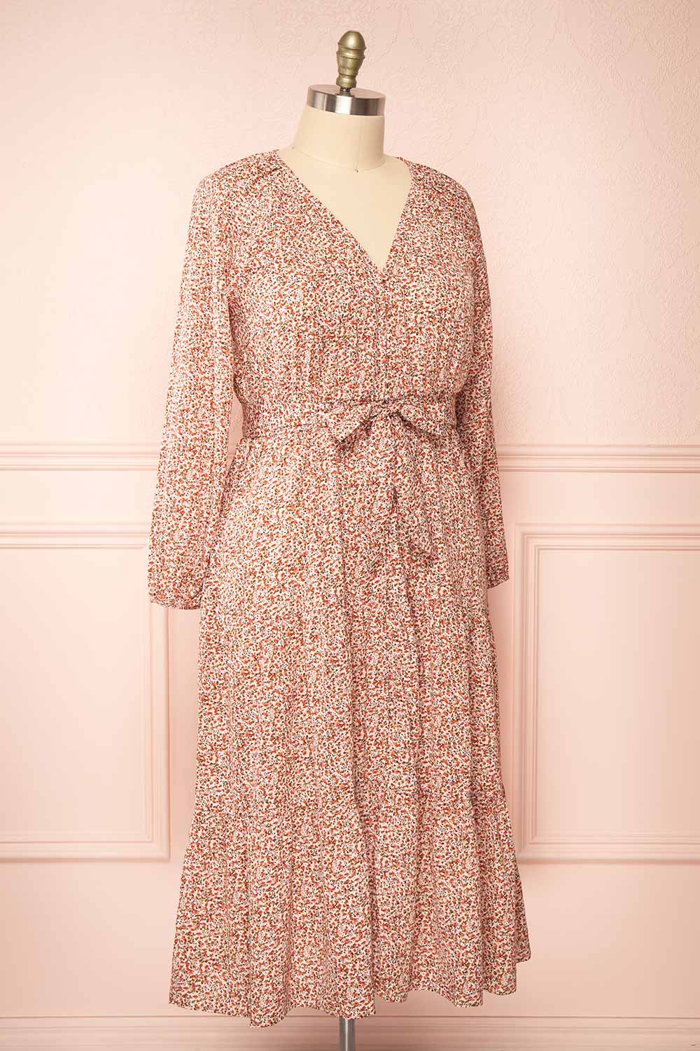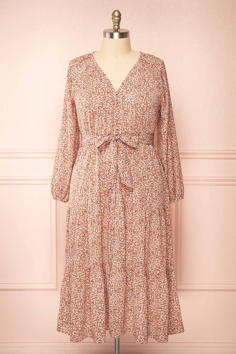 Arka | Robe Fleuri Midi avec Manches Longues