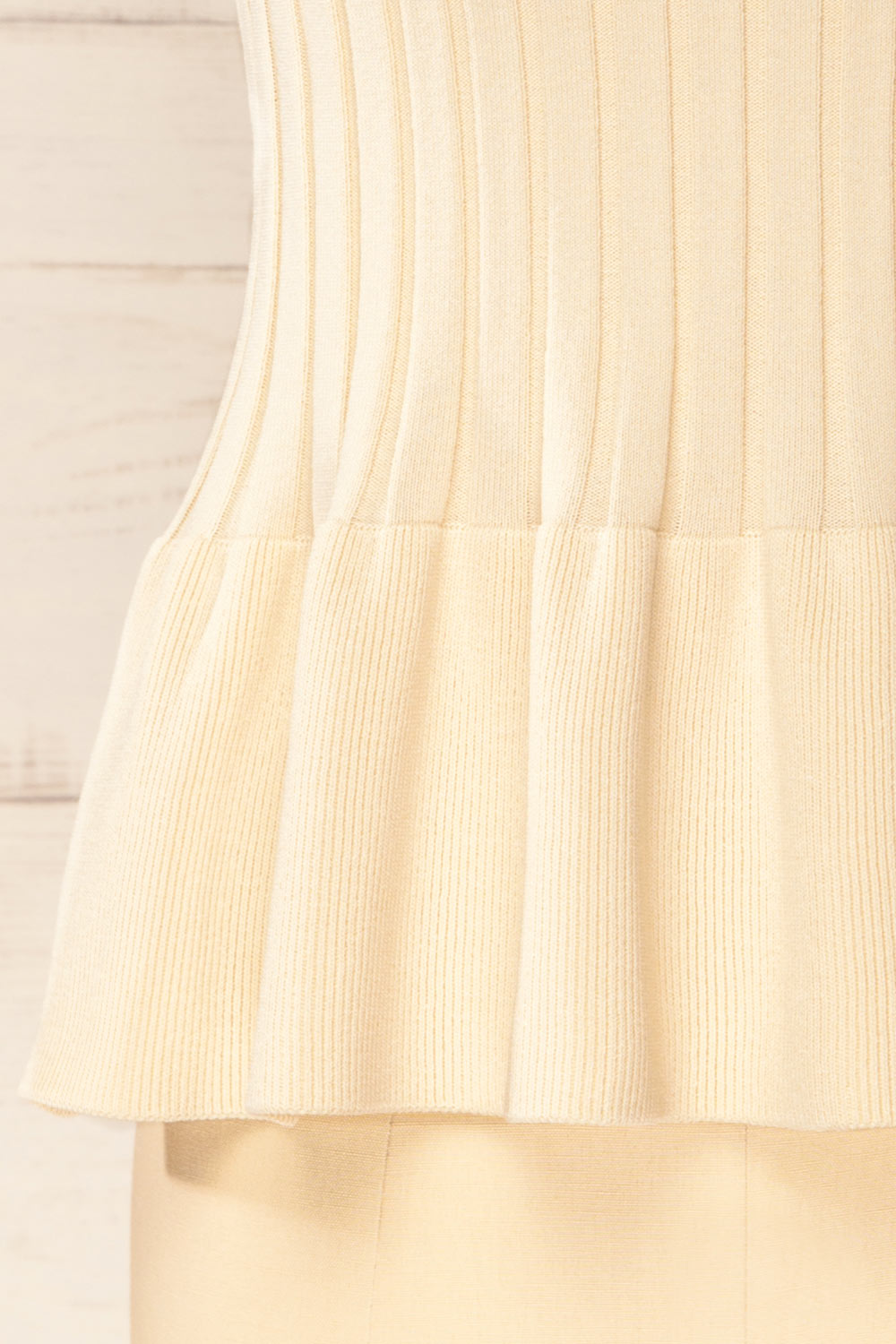 Préparez-vous pour le soleil avec cet adorable haut à basque beige! Son tissu côtelé légèrement extensible est ultra confortable et sa coupe péplum est parfaite à associer à votre short en jean préféré pour un ensemble estival tout en douceur. Vous vous sentirez légère et mignonne toute la saison!