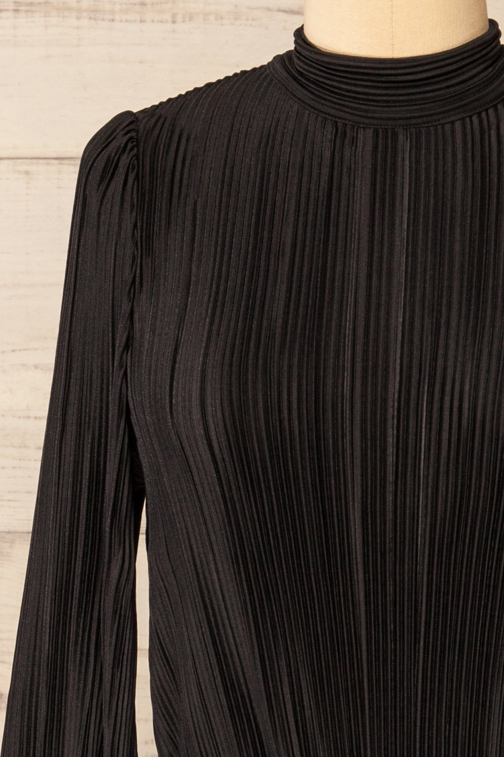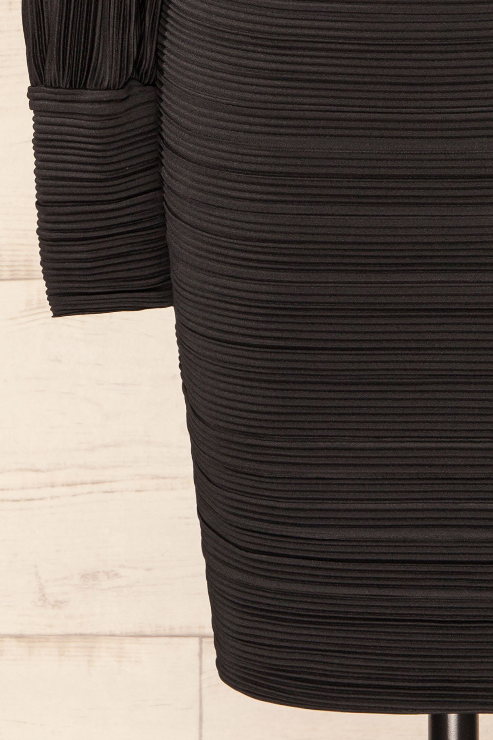 Atyrau Noir | Robe Courte Plissée à Manches Longues