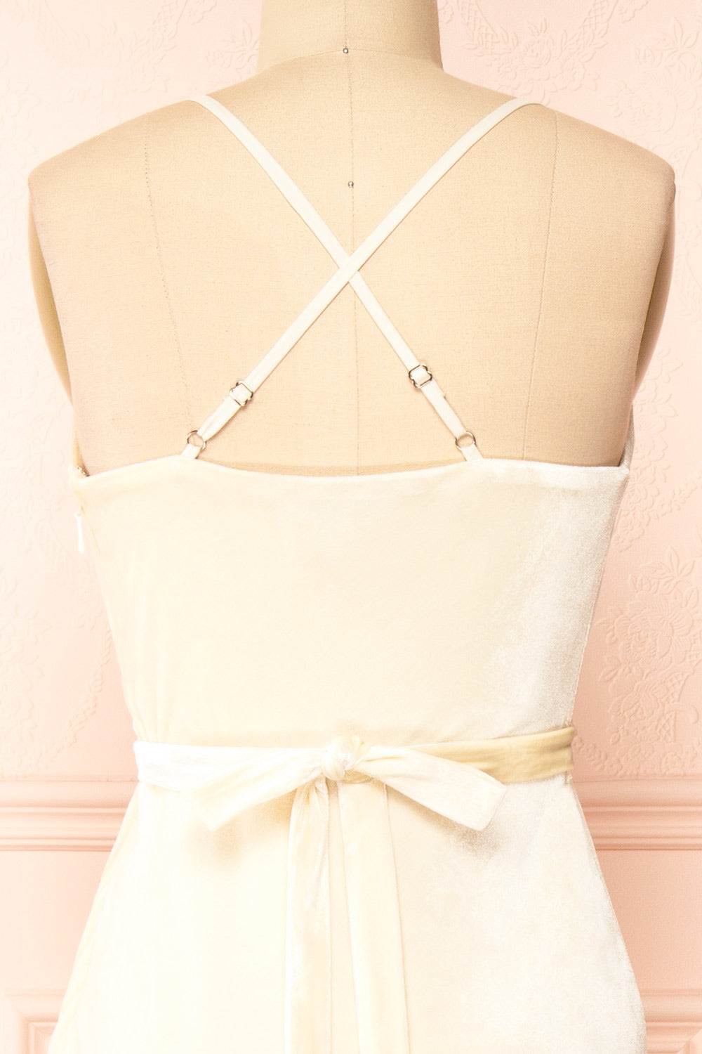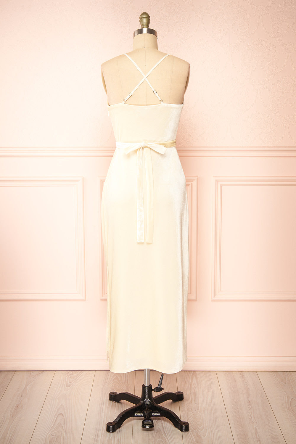 Vous aurez une allure de rêve vêtue de cette magnifique robe midi en velours! Cette jolie pièce présente un col baveux et une silhouette drapée qui mettront parfaitement en valeur votre silhouette, tandis que la ceinture en tissu soulignera votre taille. Le doux tissu en velours ivoire et la petite fente sur le côté ajoutent une touche d'élégance, ce qui en fait la robe idéale pour plus d'une occasion. Les bretelles ajustables qui se croisent délicatement dans le dos sont un détail utile qui vous permettra d'obtenir la coupe parfaite!