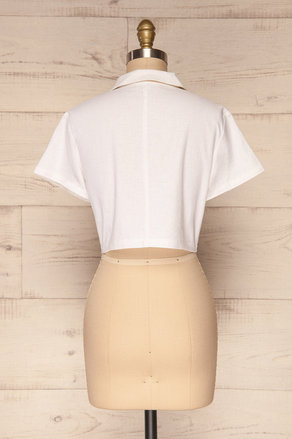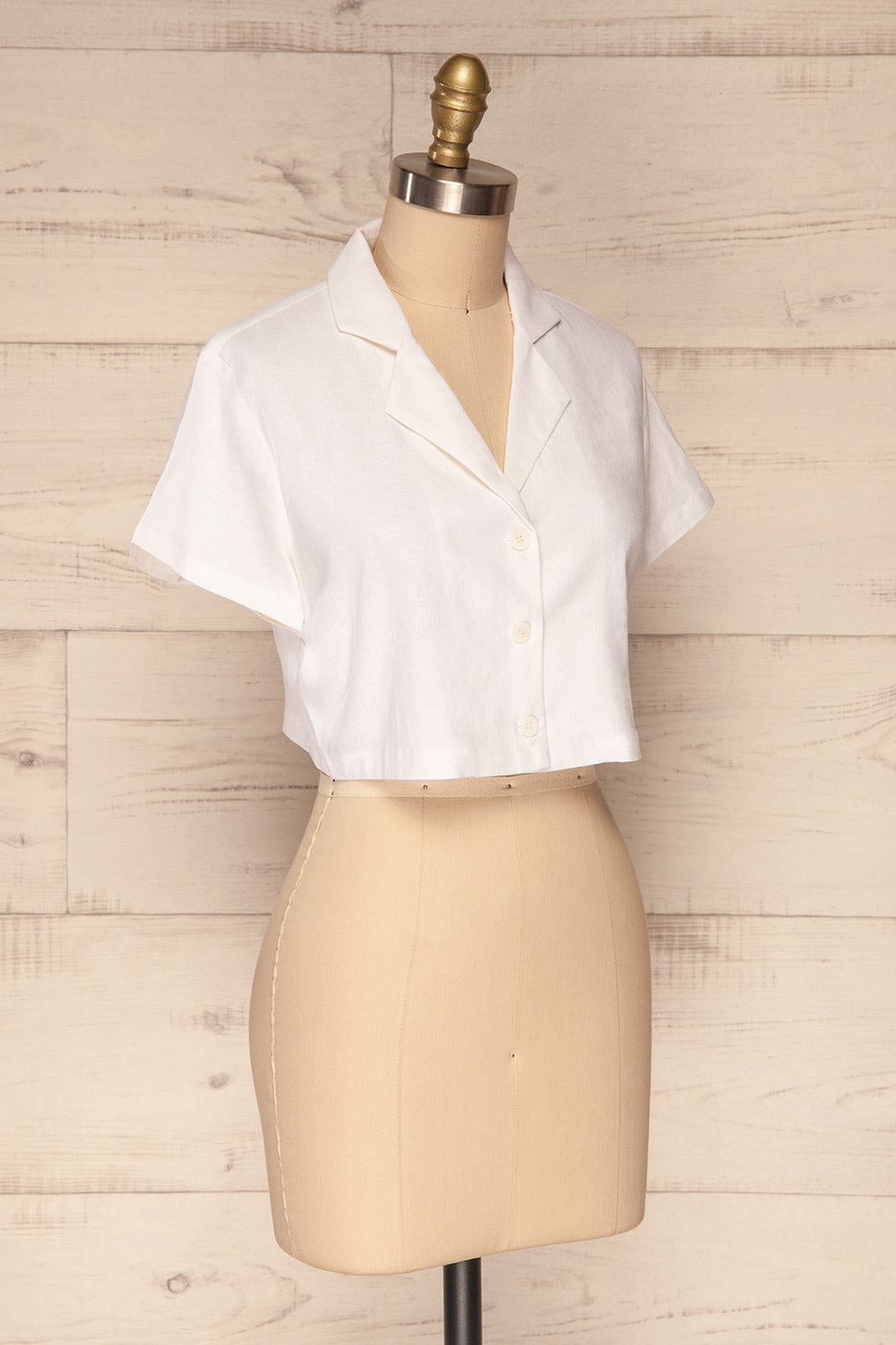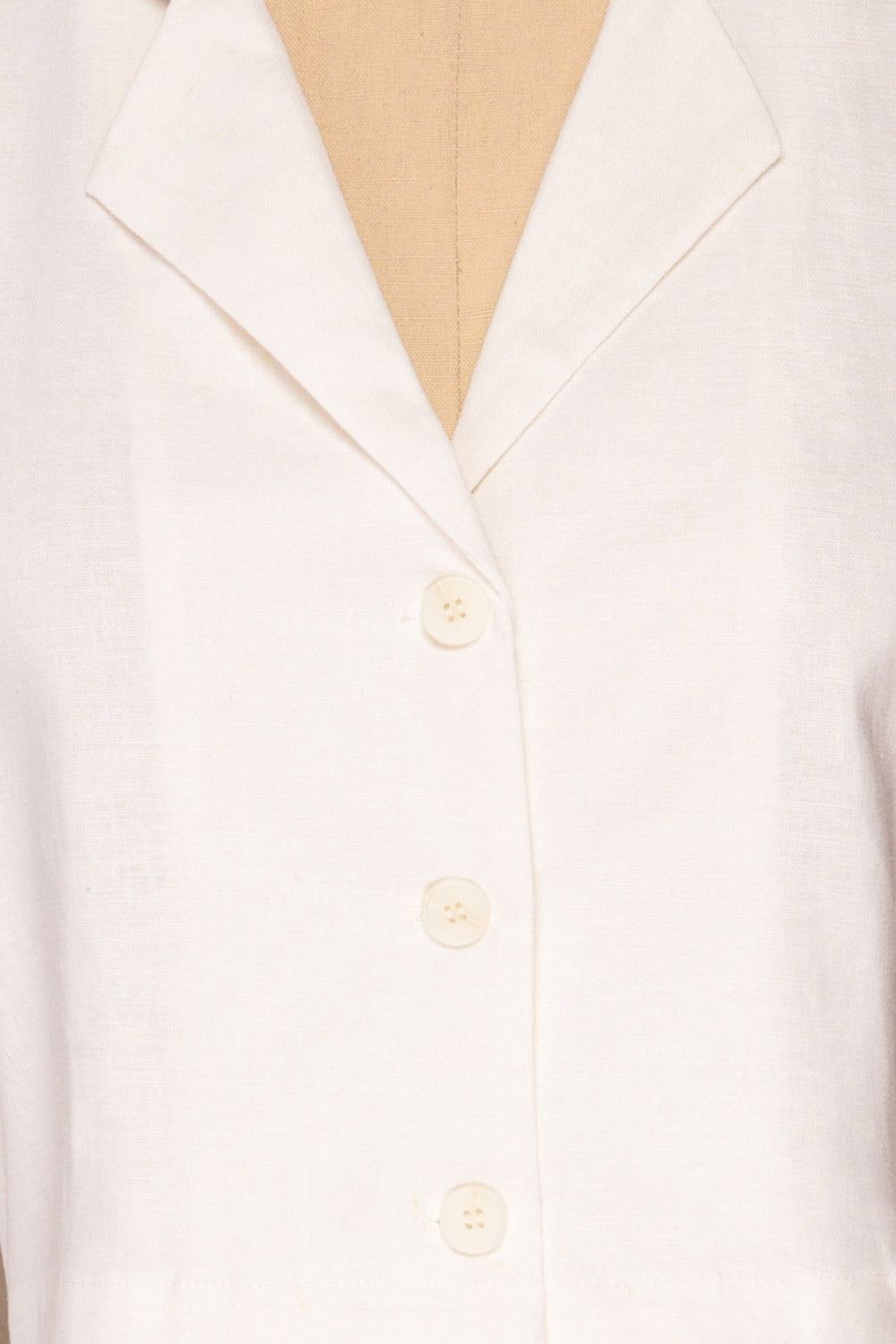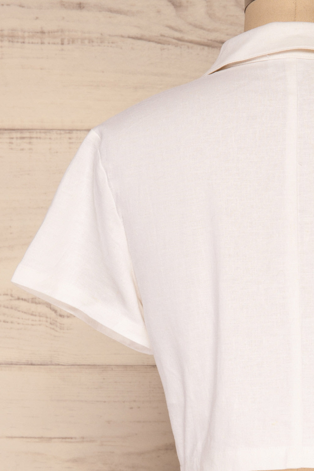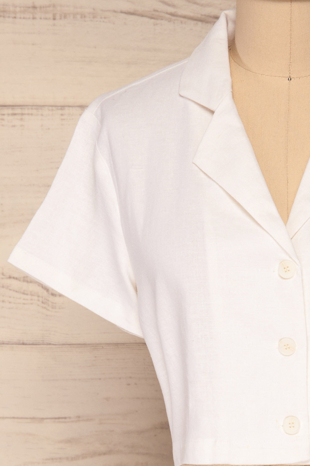 Ce haut écourté exclusif à La Petite Garçonne deviendra votre morceau de prédilection pour la saison à venir! Une version moderne d'un classique; il vous habillera avec classe. Le mélange de lin est léger et confortable, alors que les boutons et les manches courtes sont pratiques. Pour une superbe tenue soignée, agencez-le du pantalon AGOYAN, de souliers plateformes et de grosses boucles d'oreilles!