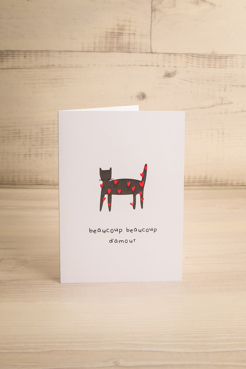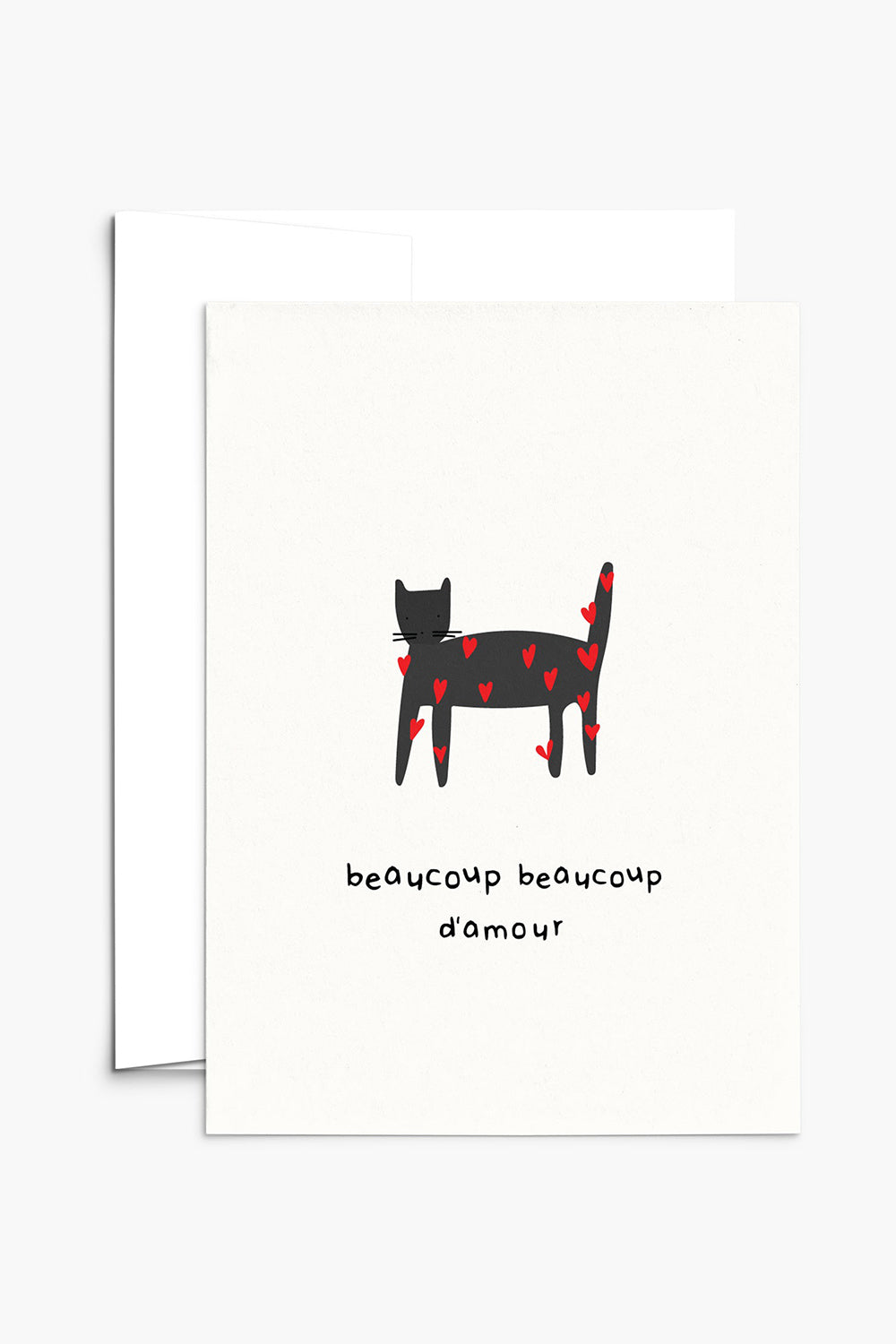 Partagez un peu plus d'amour avec cette carte de vœux super mignonne représentant un adorable chat noir blotti de petits cœurs rouges, le tout enveloppé dans le doux message « beaucoup, beaucoup d'amour ». Faite au Canada par Mimi & August, cette charmante carte allie l'art ludique à la chaleur du cœur. Elle est parfaite pour rendre la journée de quelqu'un encore plus spéciale.