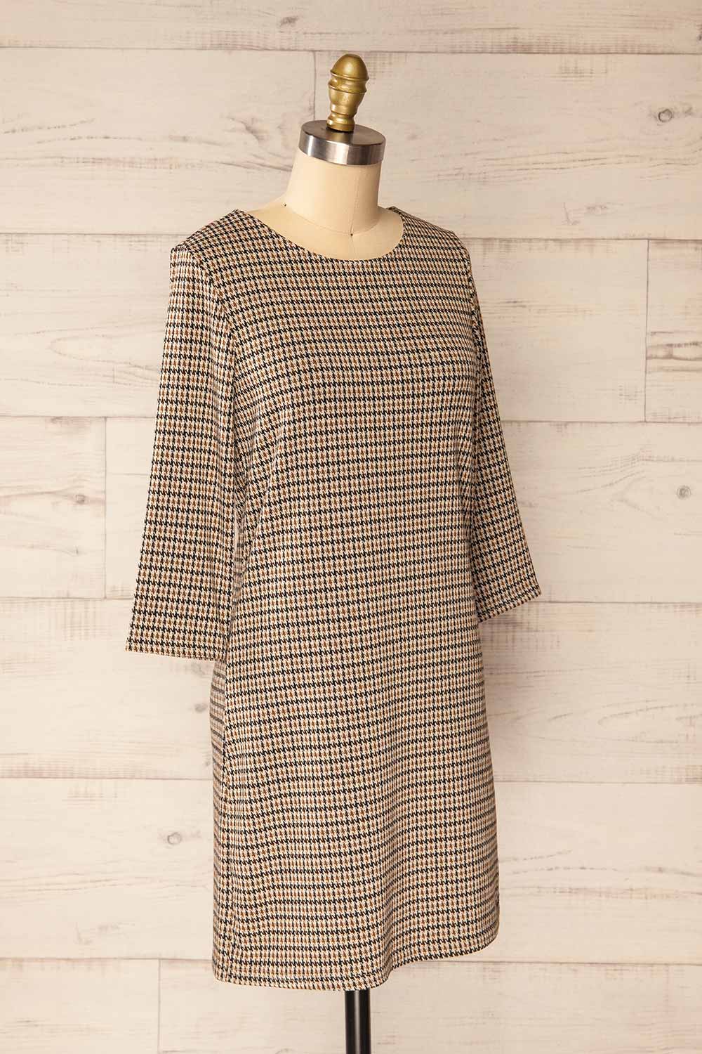 Bezaha | Robe Courte Pied-de-Poule à Manches 3/4