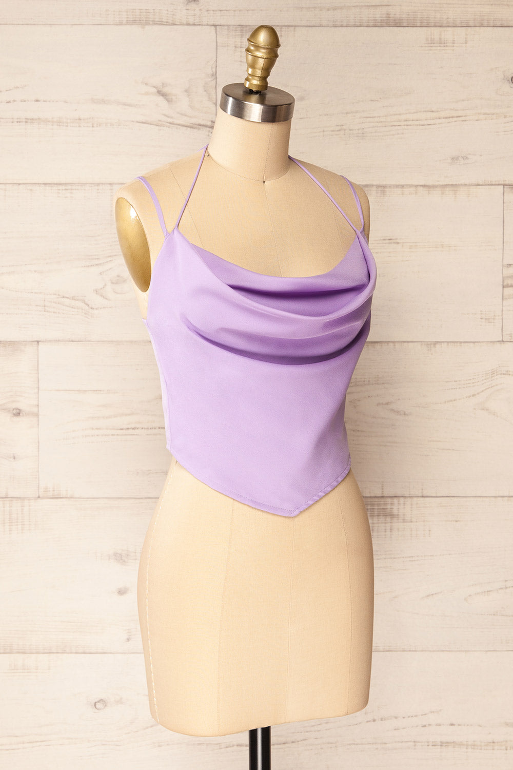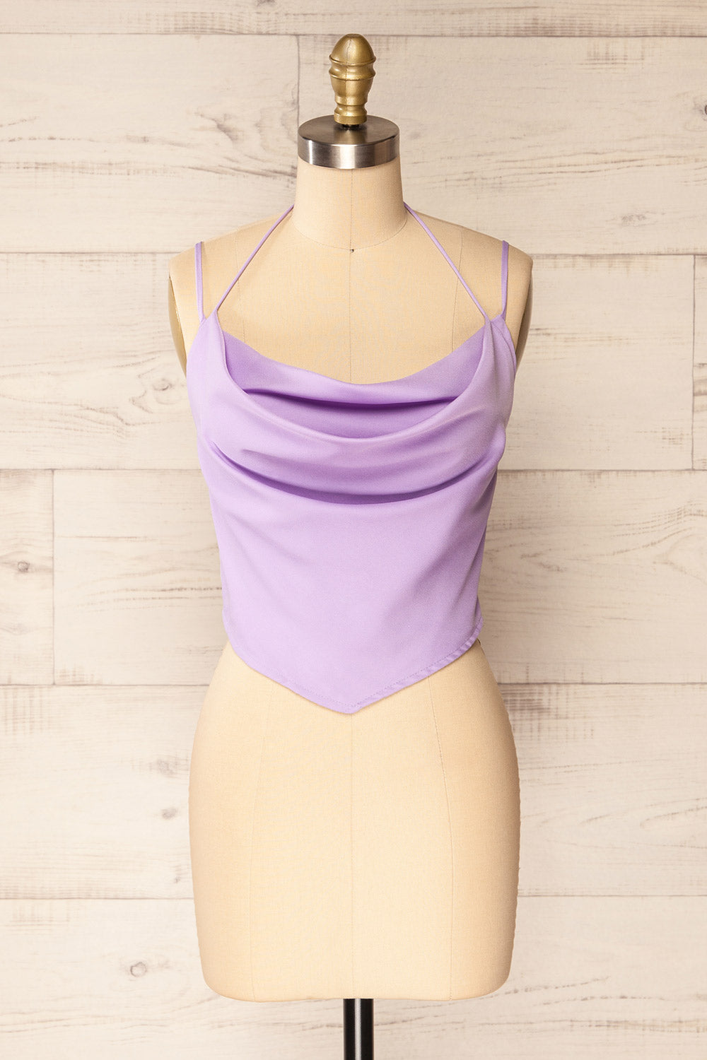 Beziers Lavande | Haut Écourté en Satin à Col Baveux