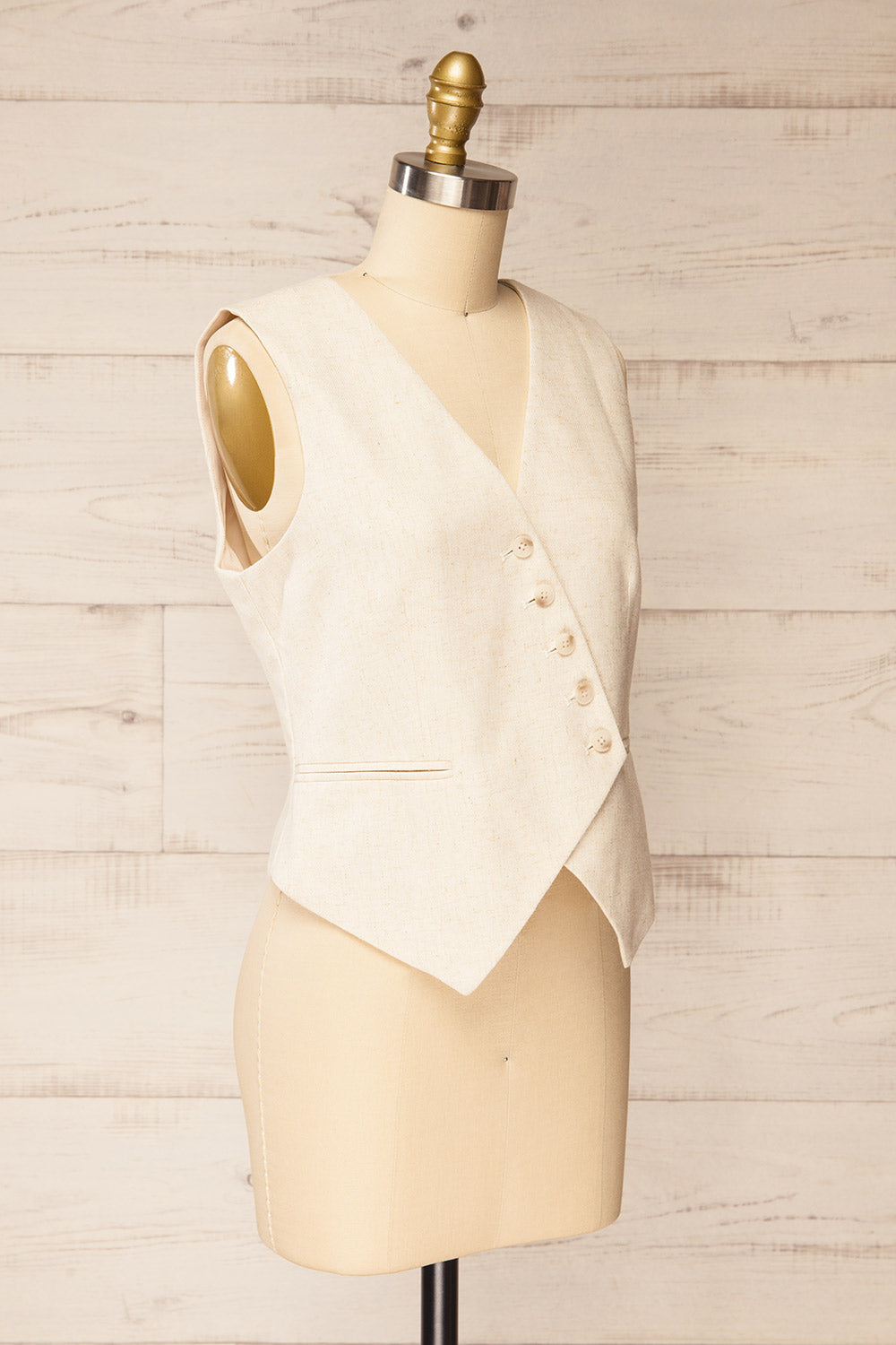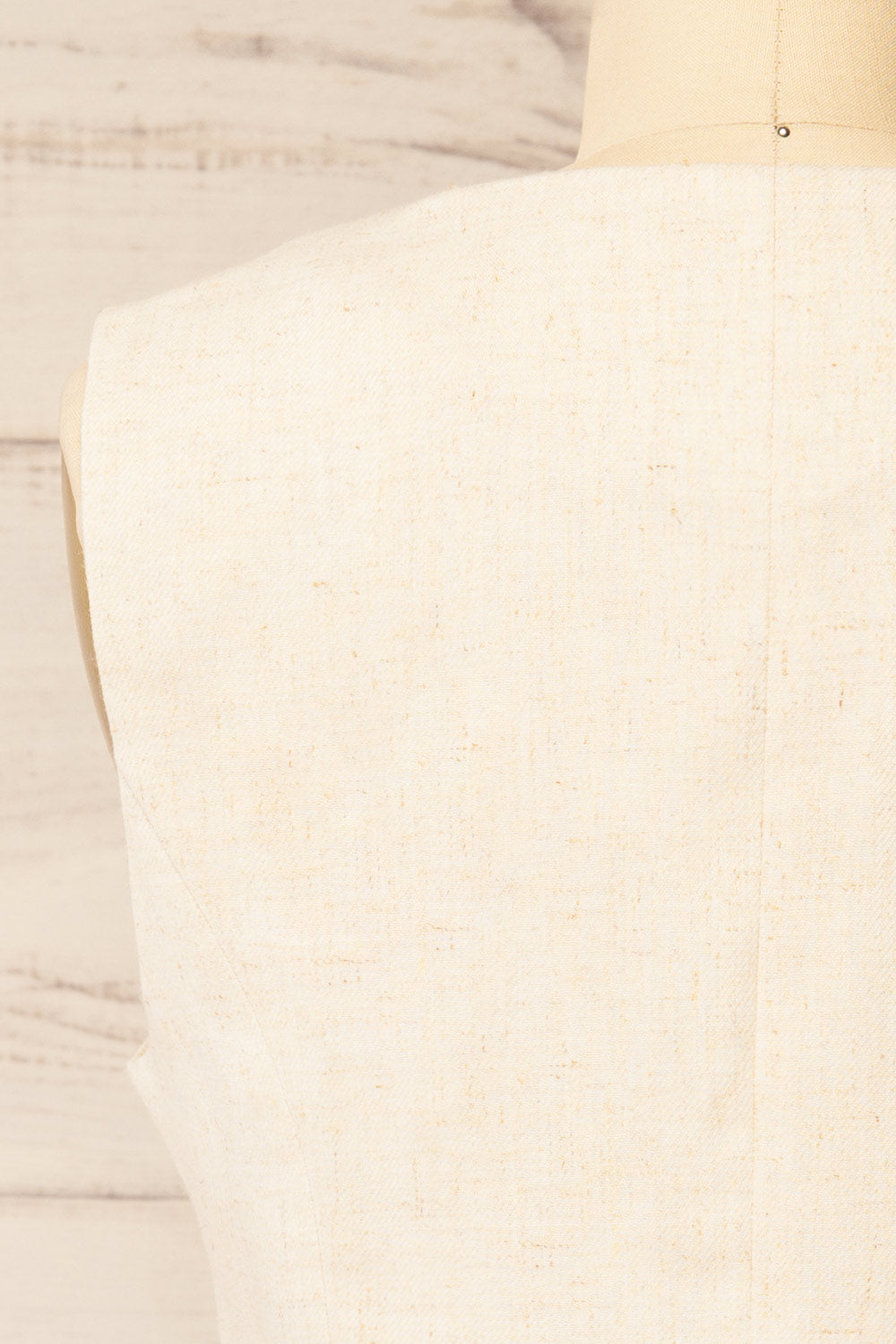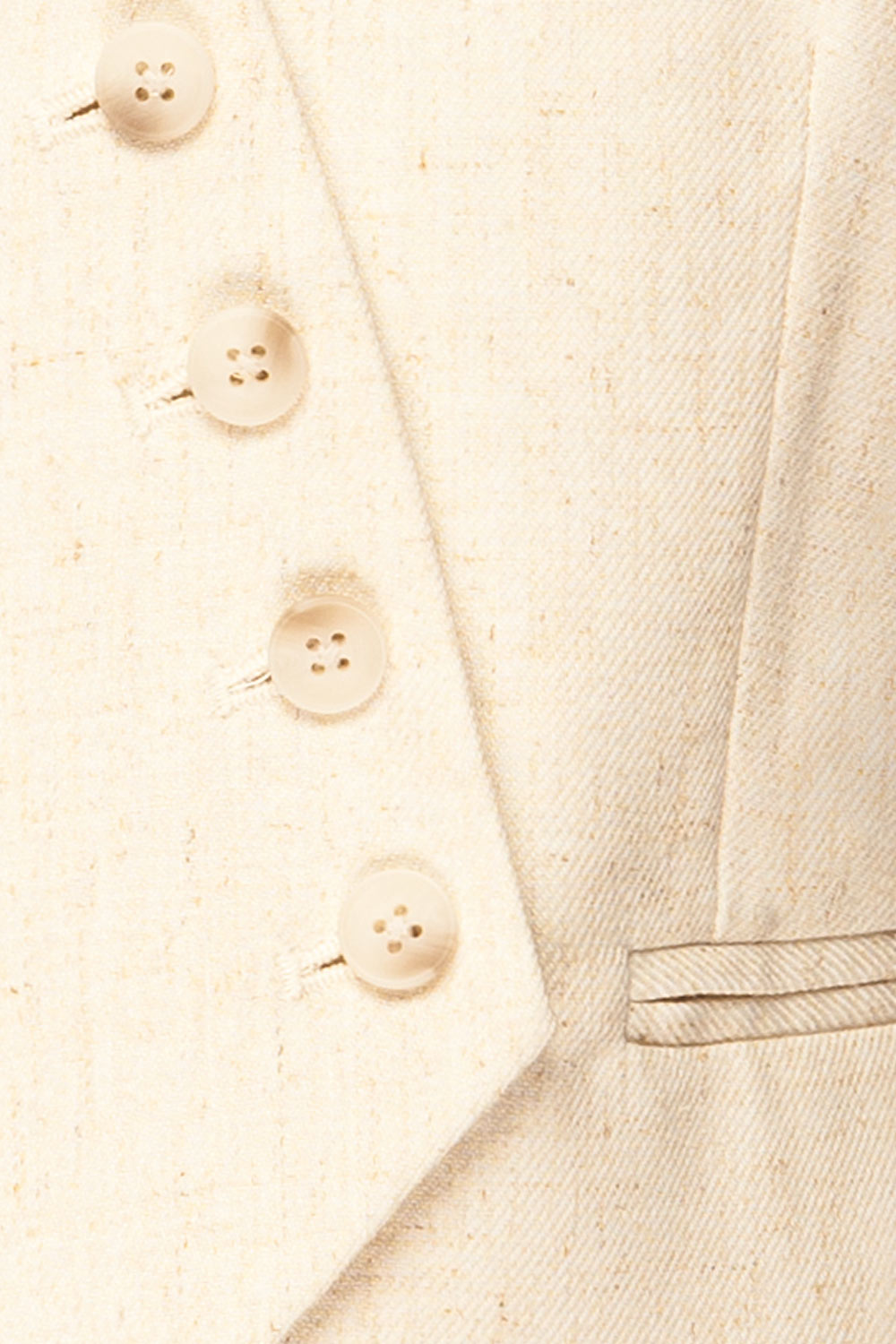 Ce gilet texturé est un ajout unique et élégant à toute garde-robe! Le revers asymétrique ajoute une touche de modernité à cette pièce classique, tandis que les boutons marbrés apportent une subtile touche d'élégance. Sa couleur polyvalente permet de l'agencer facilement à une grande variété de pièces, des chemises à motifs aux pantalons unis. Que vous alliez au travail ou à une occasion spéciale, ce gilet ne manquera pas de faire tourner les têtes!