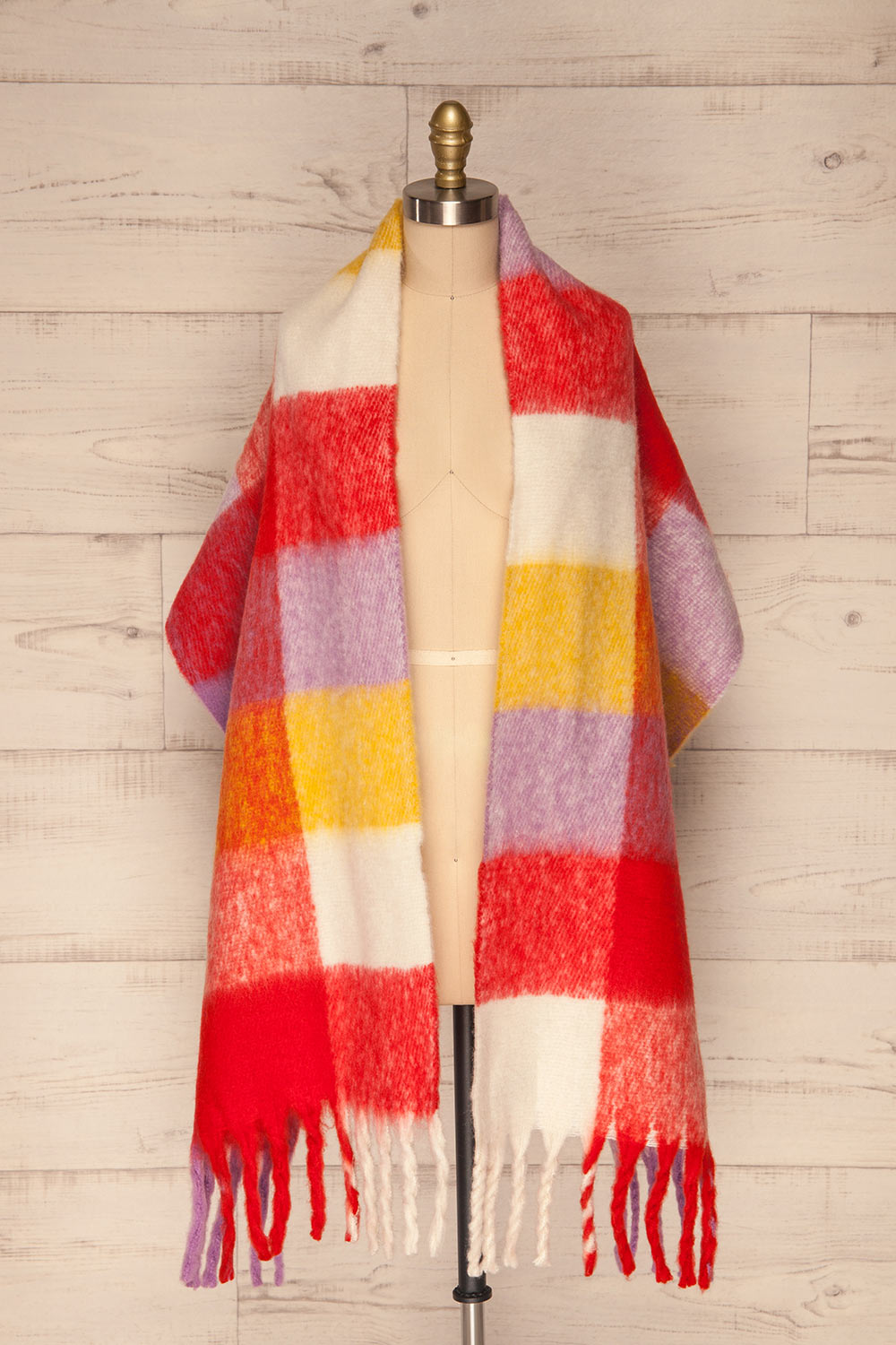 This soft scarf will have you loving the cold temperatures! Wrapped around your neck or draped over your shoulders, its cozy texture and oversized cut will keep you feeling toasty.