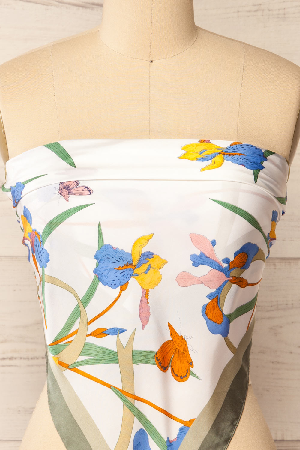 Vous tomberez à coup sûr amoureuse de ce joli foulard! Son imprimé floral coloré avec des papillons ajoutera une touche printanière à vos tenues quotidiennes. Sa douce texture satinée sera un rêve à porter, que vous le mettiez autour de votre cou ou dans vos cheveux.