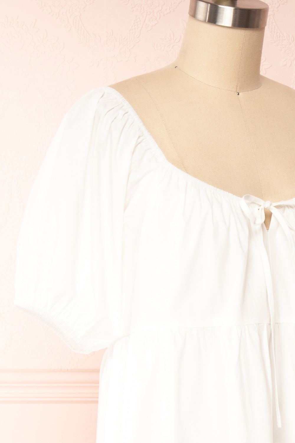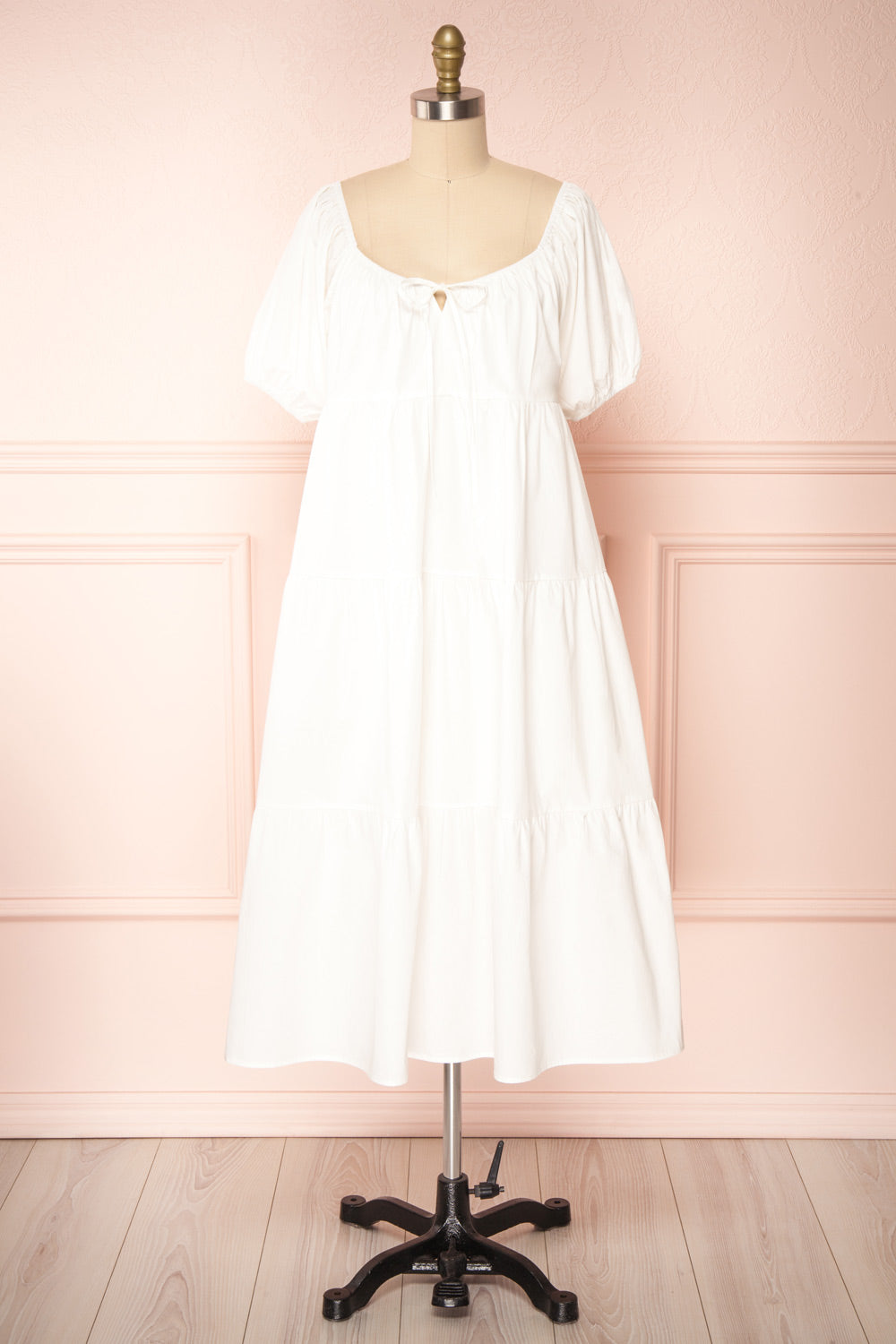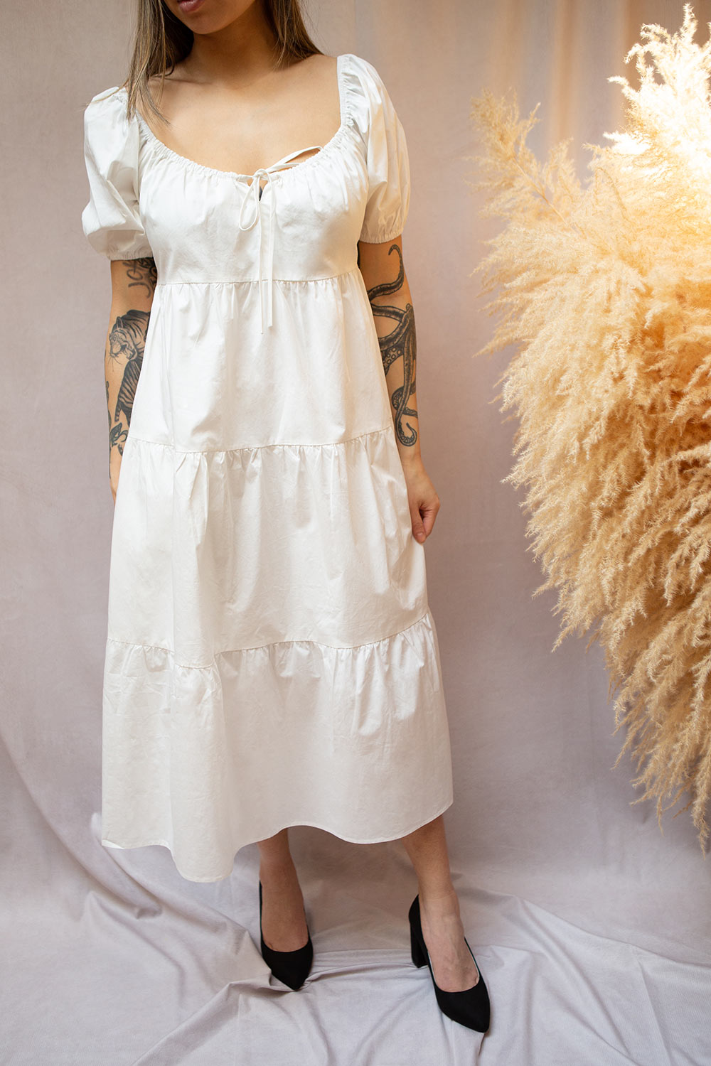 Charity | Robe Blanche Étagée à Manches Bouffantes