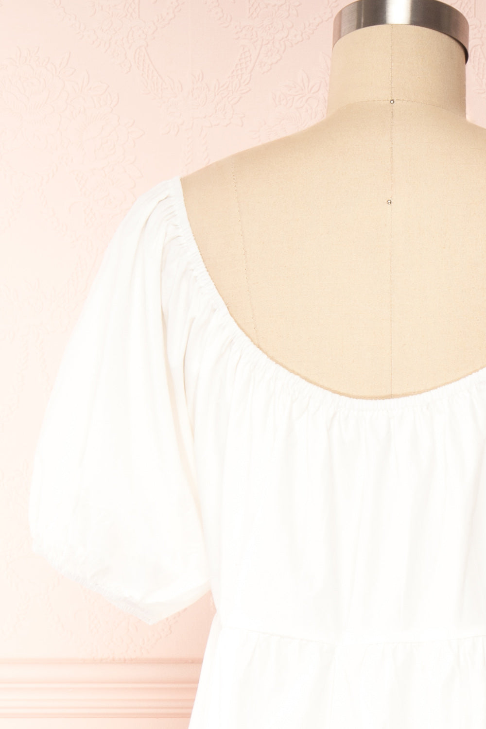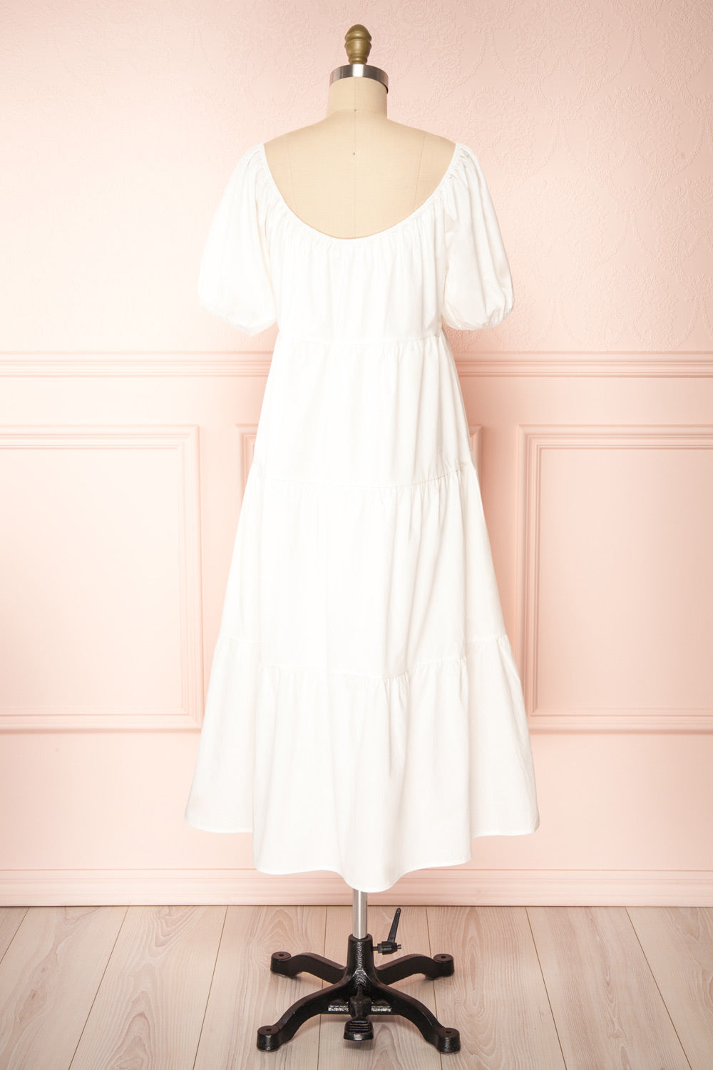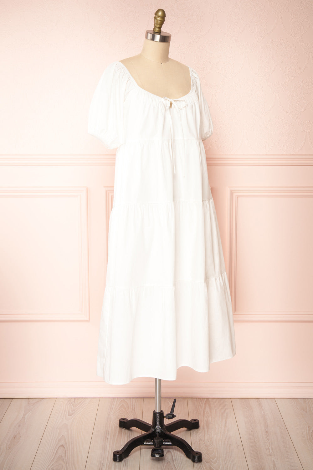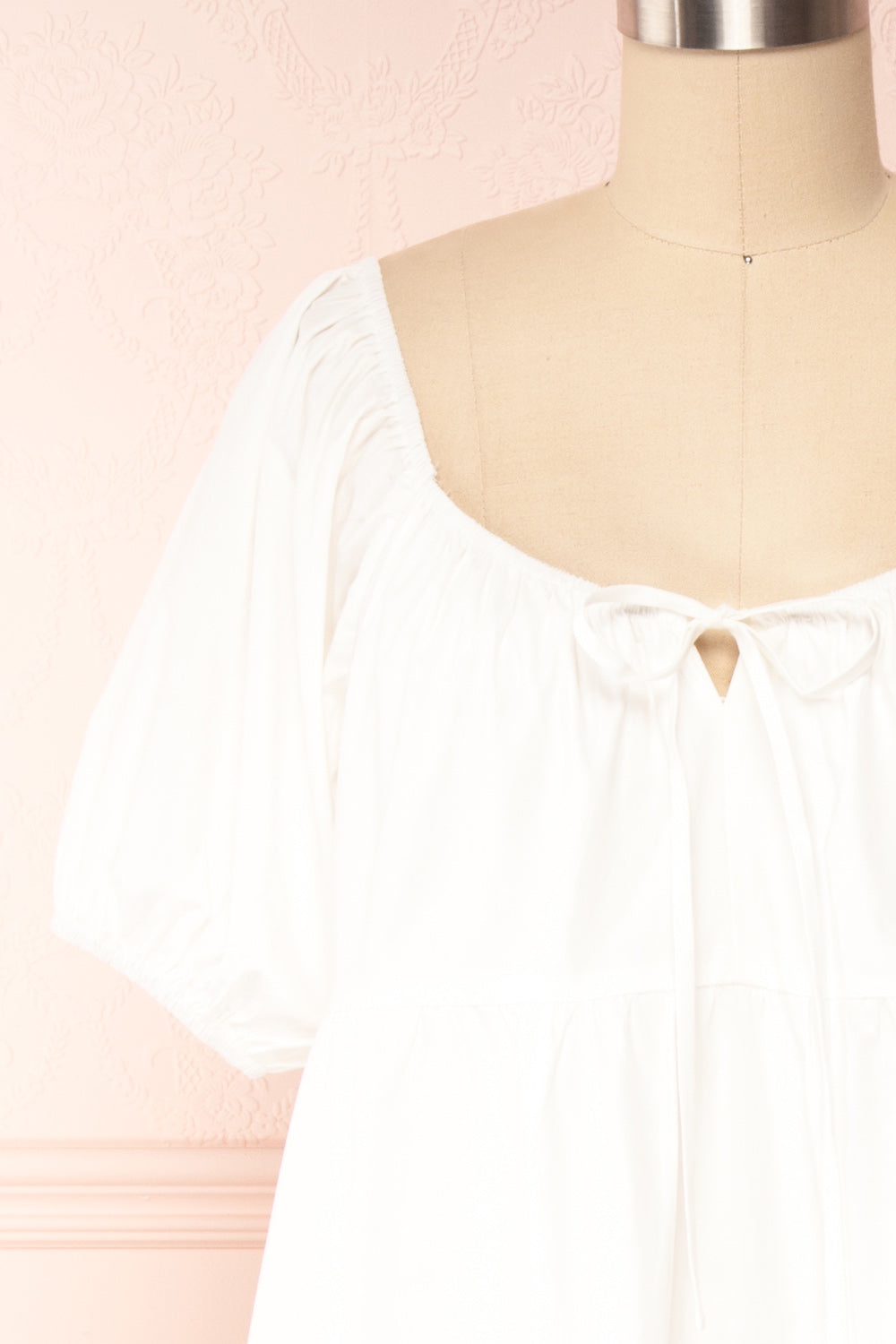 Charity | Robe Blanche Étagée à Manches Bouffantes