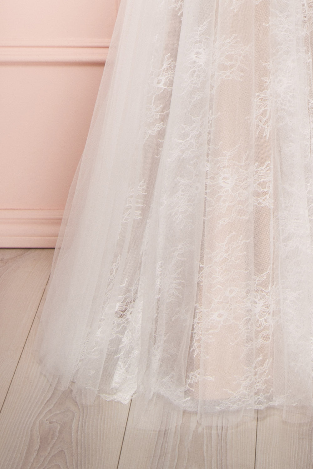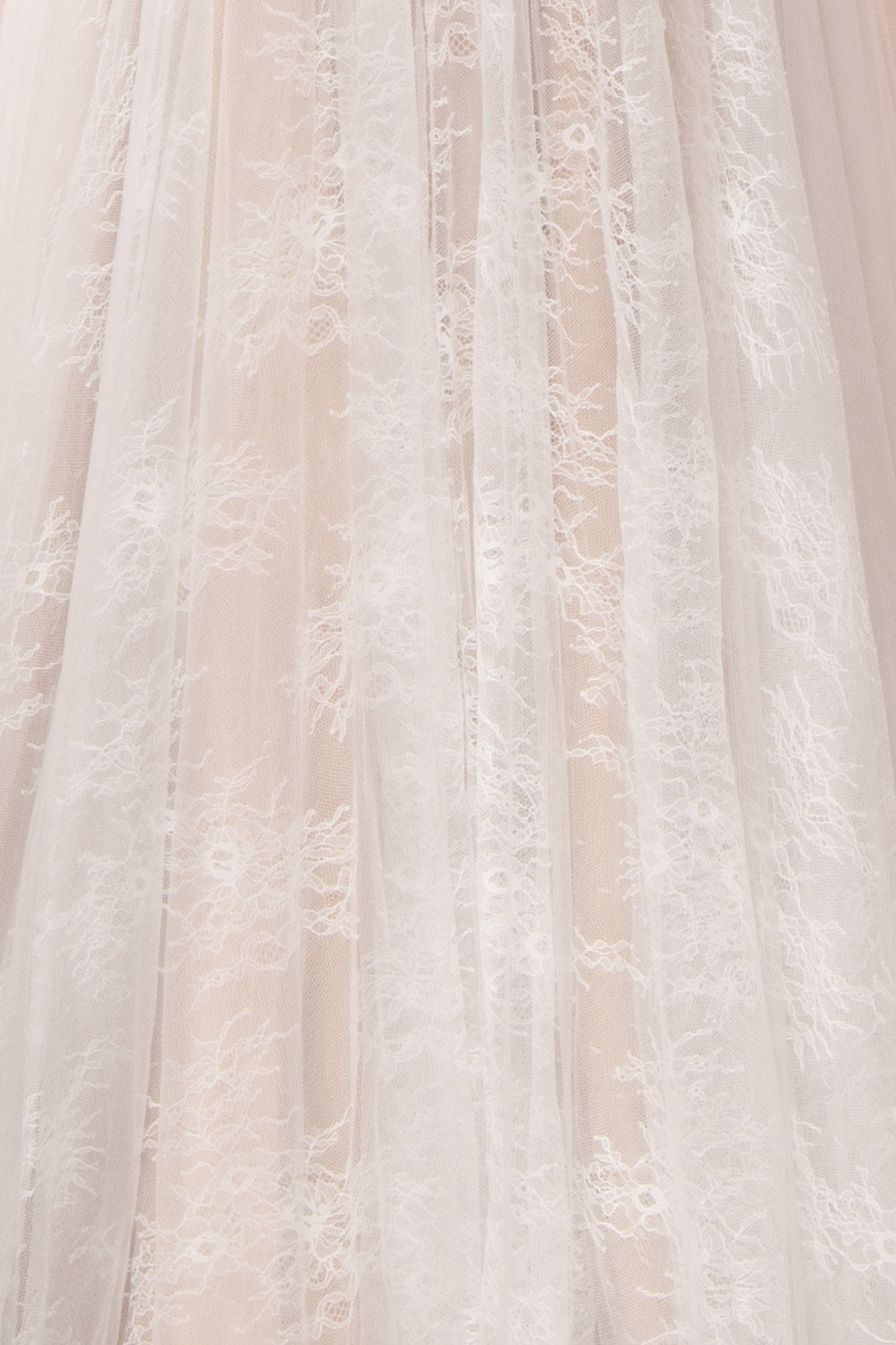 Texture : Tulle, dentelle, doublure satinée | Tulle, lace, satin lining