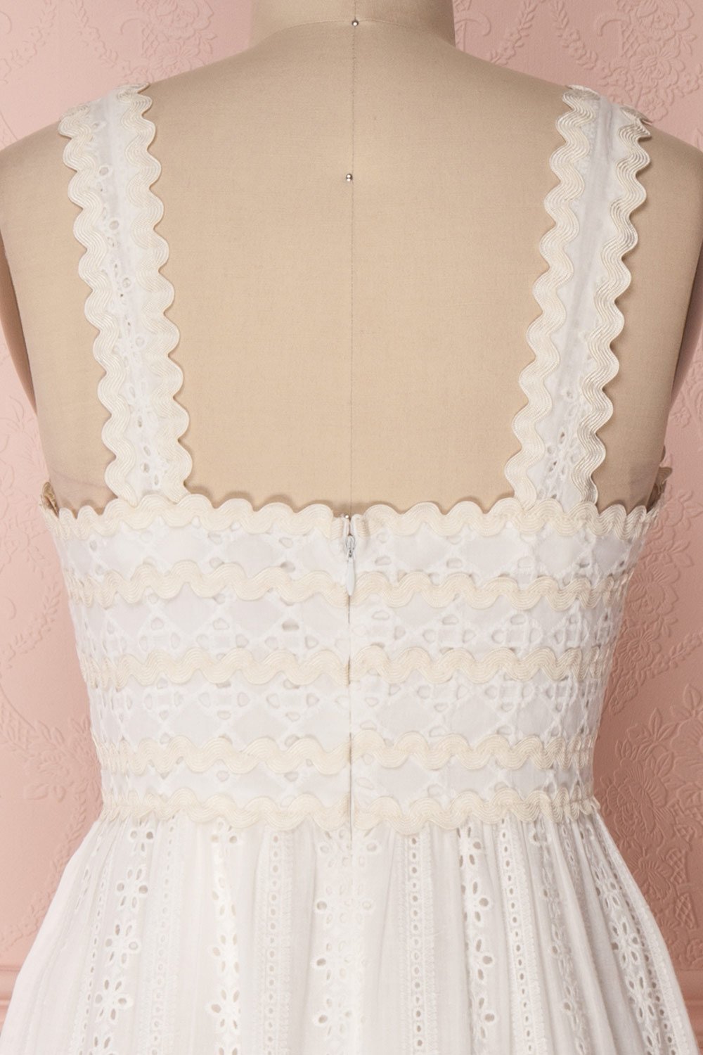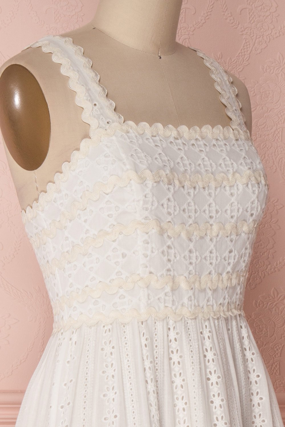 Cette charmante robe incite à l'allégresse et au soleil estival! Sa coupe ligne A de dentelle brodée est enjolivée de rubans ondulés pour une allure à la fois élégante et festive. Une mince doublure vous couvrira, et une fermeture éclair dissimulée au dos vous permettra de l'enfiler avec aise.