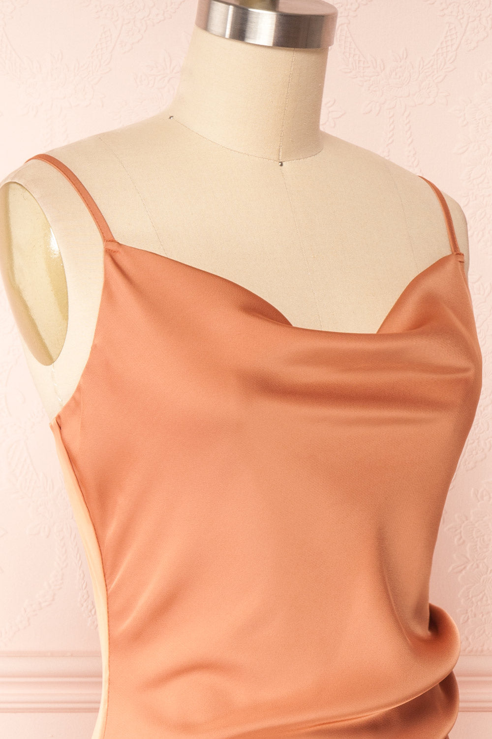 Vous ne pourrez résister au confort et au glamour discret de cette robe de soirée satinée! La coupe légèrement ajustée retombera avec fluidité sur votre silhouette, tout comme la taille cintrée. Les bretelles ajustables vous assureront un port sur-mesure, tandis que la large fente latérale vous offrira liberté de mouvements. Pour une soirée mondaine ou une célébration entres amis, elle saura s'adapter à votre style!