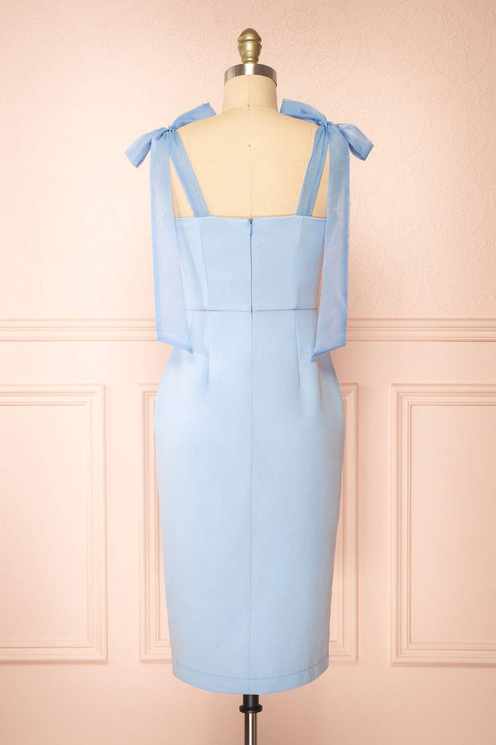Claudy | Robe Courte Bleue à Bretelles Nouées