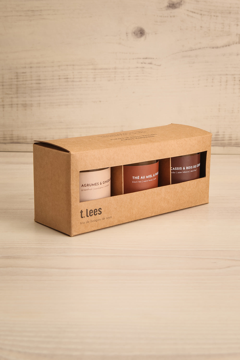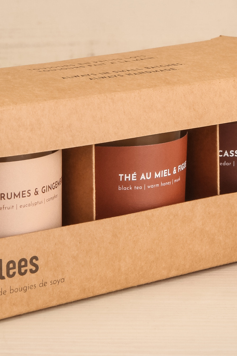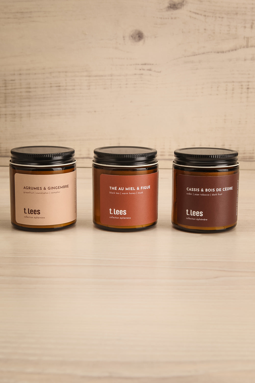 Ces coffrets cadeaux sont parfaits à offrir en cadeau ou simplement pour découvrir les bougies T. Lees! Chaque trio est composé de trois bougies de 4 oz de la collection éphémère 2022, exclusivement produites dans ce format pour les coffrets. Cet ensemble contient Agrumes & Gingembre, Thé au Miel & Figues, et Cassis & Bois de Cèdre.