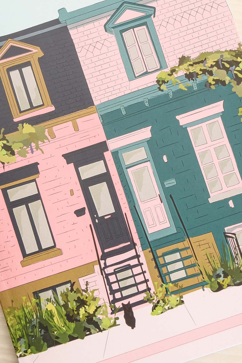 Vous allez adorer cet adorable carnet de notes réalisé par Lili Graffiti à Montréal! Ce joli cahier est orné d'une illustration colorée d'un joli immeuble résidentiel montréalais, une ode à la beauté de la ville. L'alternance de pages blanches et de pages lignées vous permet d'écrire et de dessiner, selon vos besoins. Assez petit pour être rangé dans votre sac à main, vous n'aurez plus jamais à vous passer d'un carnet de notes!