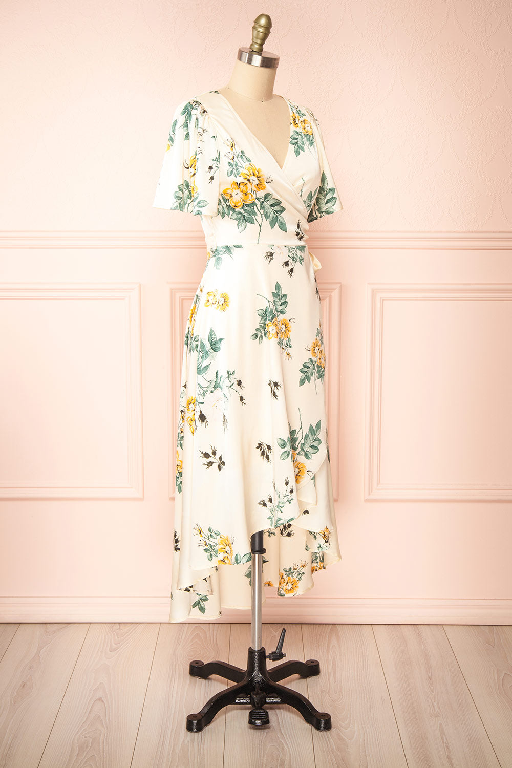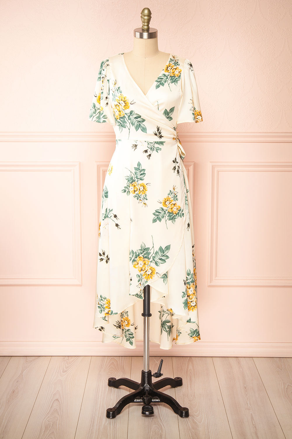 Desirae | Robe Midi Portefeuille Fleurie Satinée
