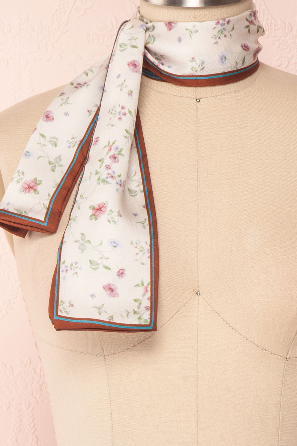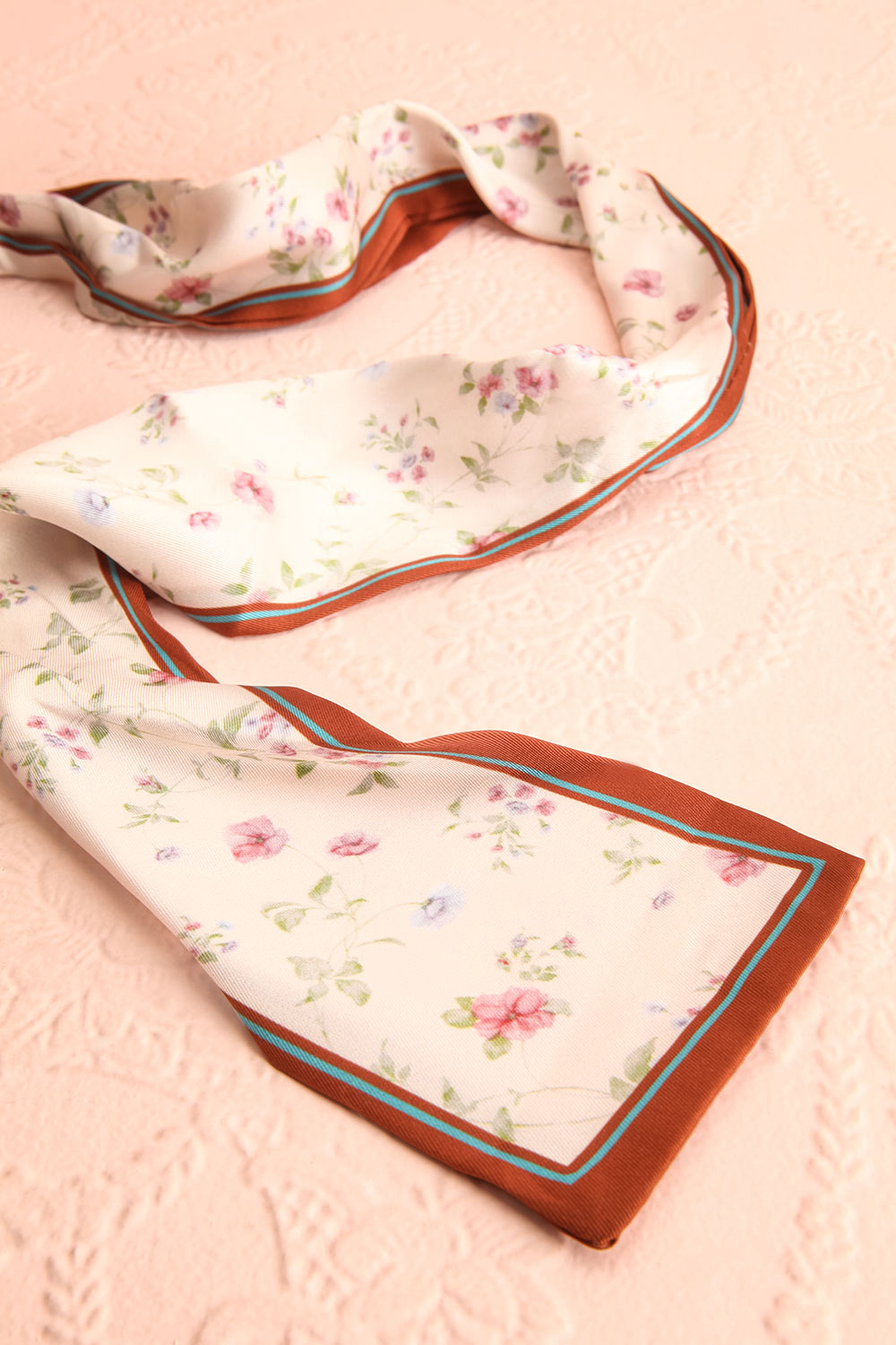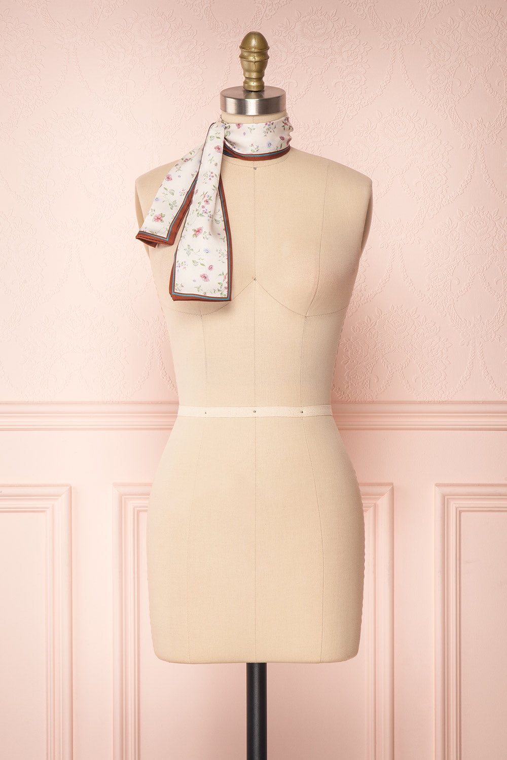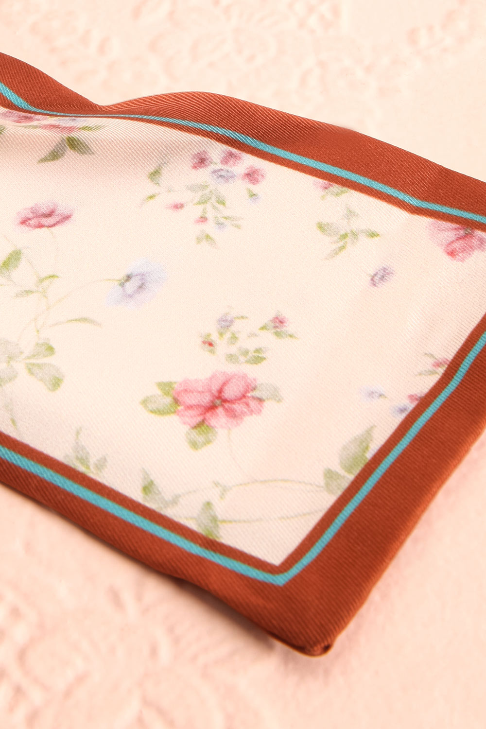 Cette écharpe soyeuse ajoutera une fraîcheur florale à vos tenues! Ses motifs de feuilles et de fleurs ainsi que son mélange subtil de couleurs seront des atouts qui vous charmeront. La texture douce et lisse sera agréable au toucher. Portez-la de nombreuses façons : dans les cheveux, autour du cou ou autour de la taille.