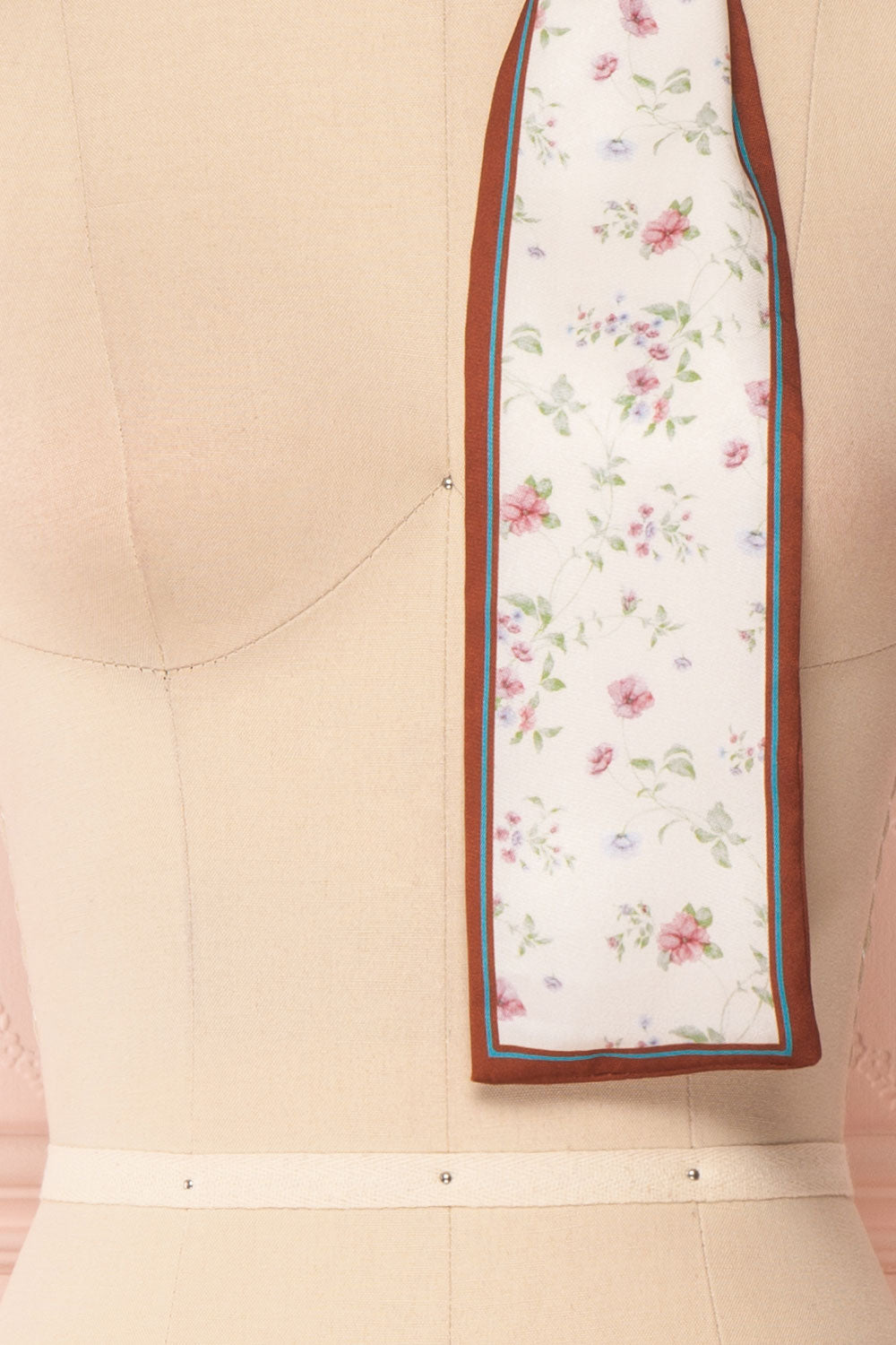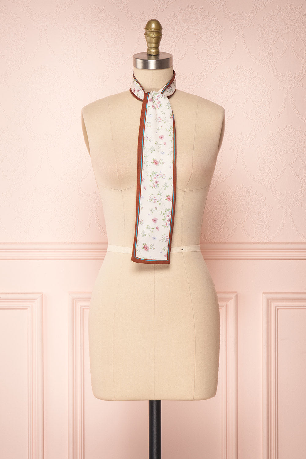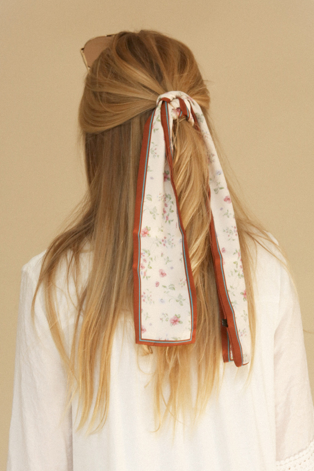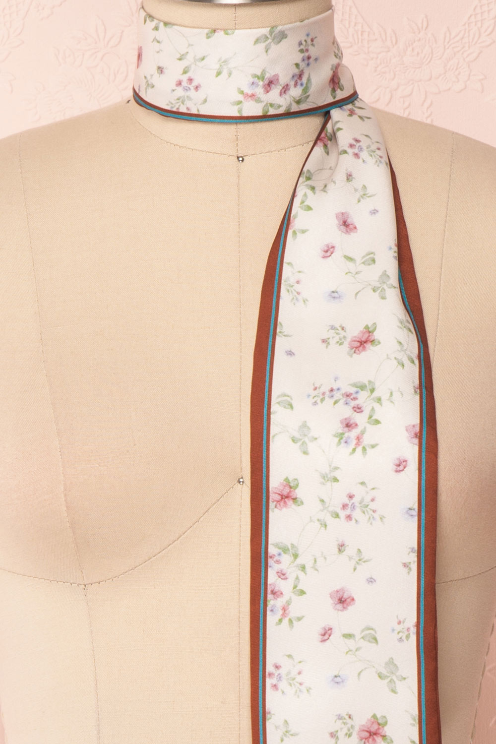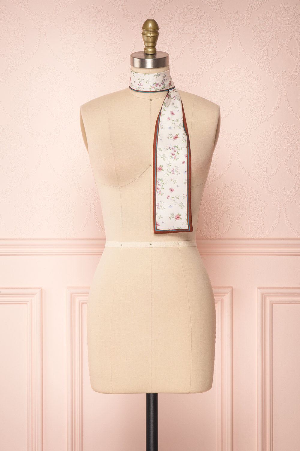 Cette écharpe soyeuse ajoutera une fraîcheur florale à vos tenues! Ses motifs de feuilles et de fleurs ainsi que son mélange subtil de couleurs seront des atouts qui vous charmeront. La texture douce et lisse sera agréable au toucher. Portez-la de nombreuses façons : dans les cheveux, autour du cou ou autour de la taille.