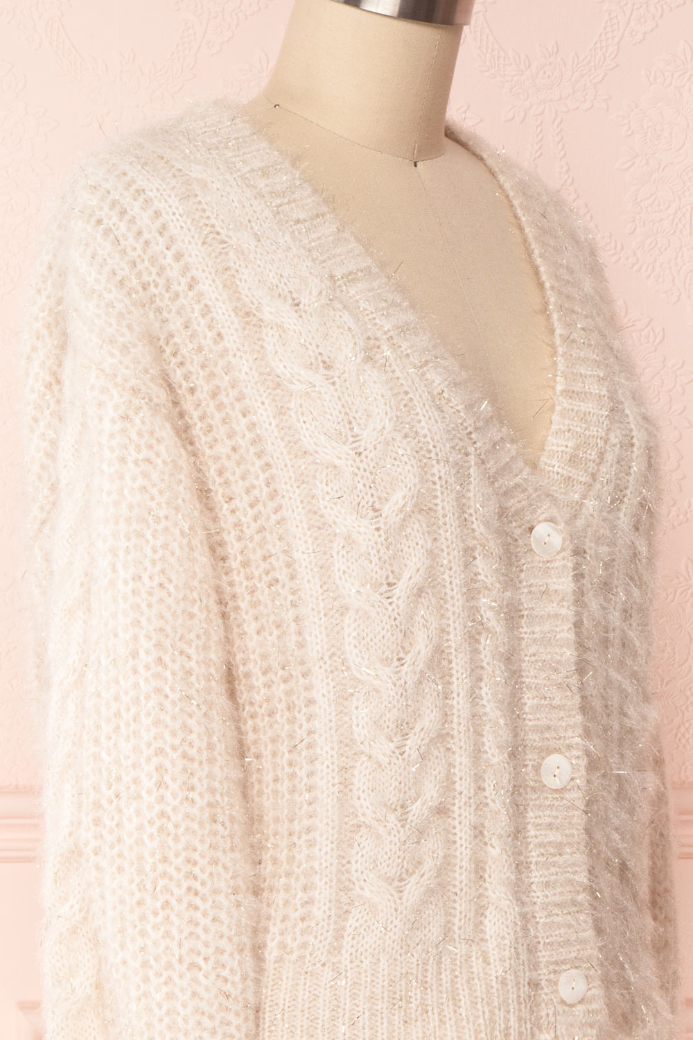 Laissez-vous envelopper par la douceur de ce cardigan! Sa coupe surdimensionnée et son tricot duveteux vous apporteront confort, tandis que ses fils argentés sont un détail que vous apprécierez. Le devant boutonné se révélera pratique pour l'enfiler aisément!